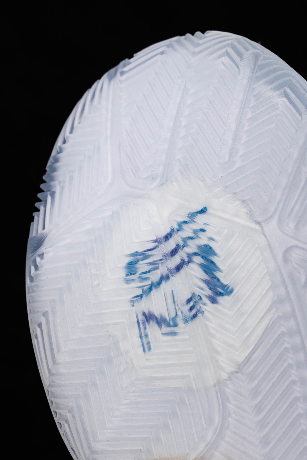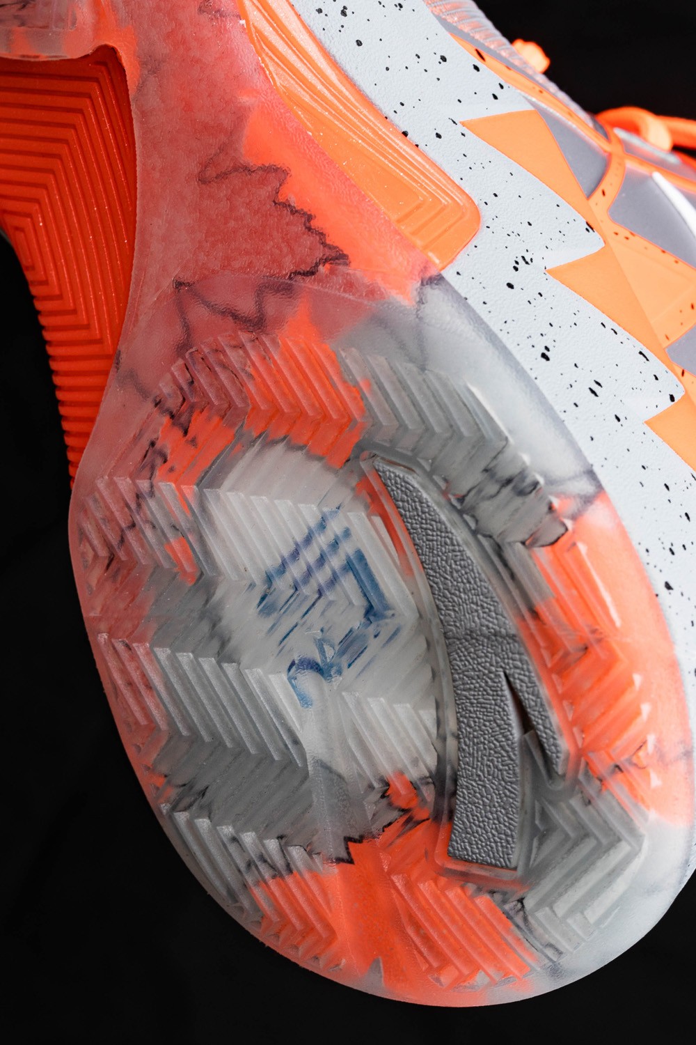 仅在外底作出造型变化,透过水晶橡胶就能看到前后掌内嵌的氮科技 Logo。