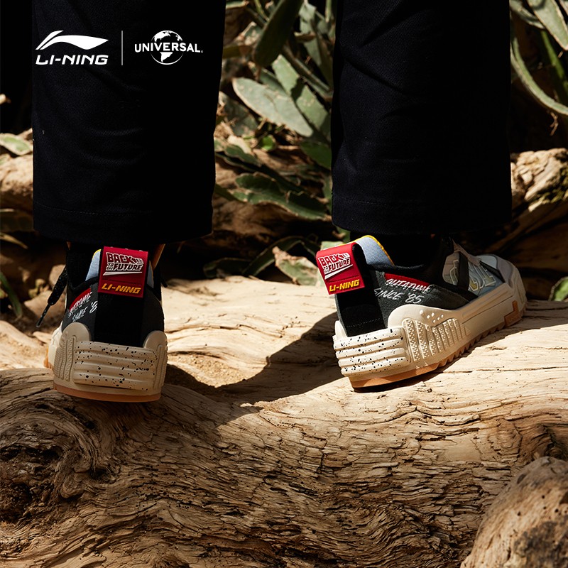 选用了李宁 001 Unblock 鞋型,兼具 001 鞋款的经典风格和前卫元素,与《回到未来》复古又科幻的气质非常吻合。