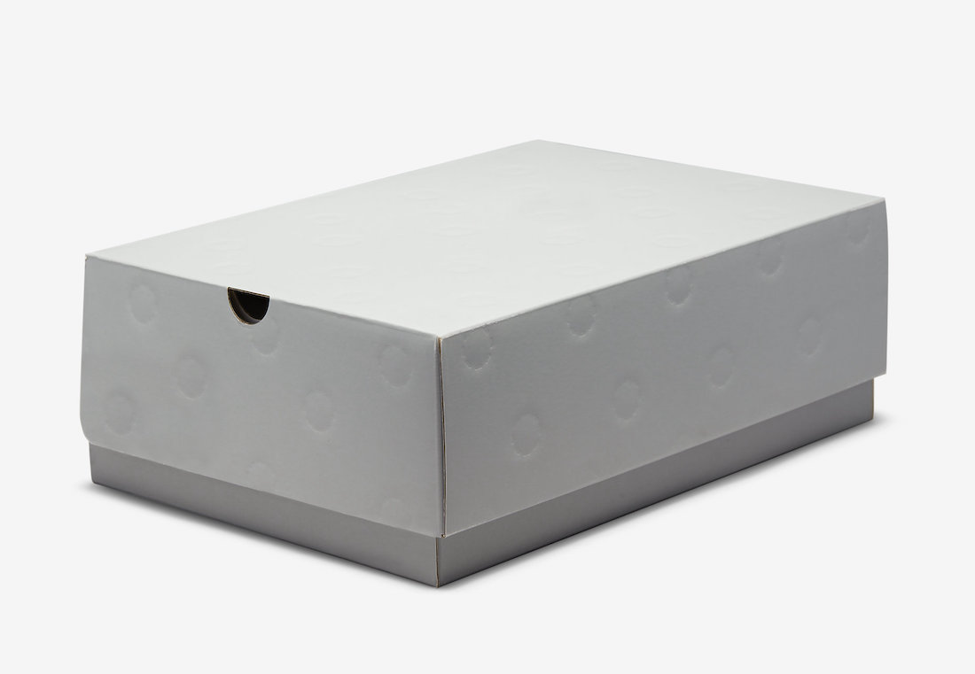 内衬采用细腻皮质包裹,提升舒适度。鞋盒本次也经过特殊设计,浅灰色调配以波点元素覆盖。配有三色鞋带,便于搭配更换。