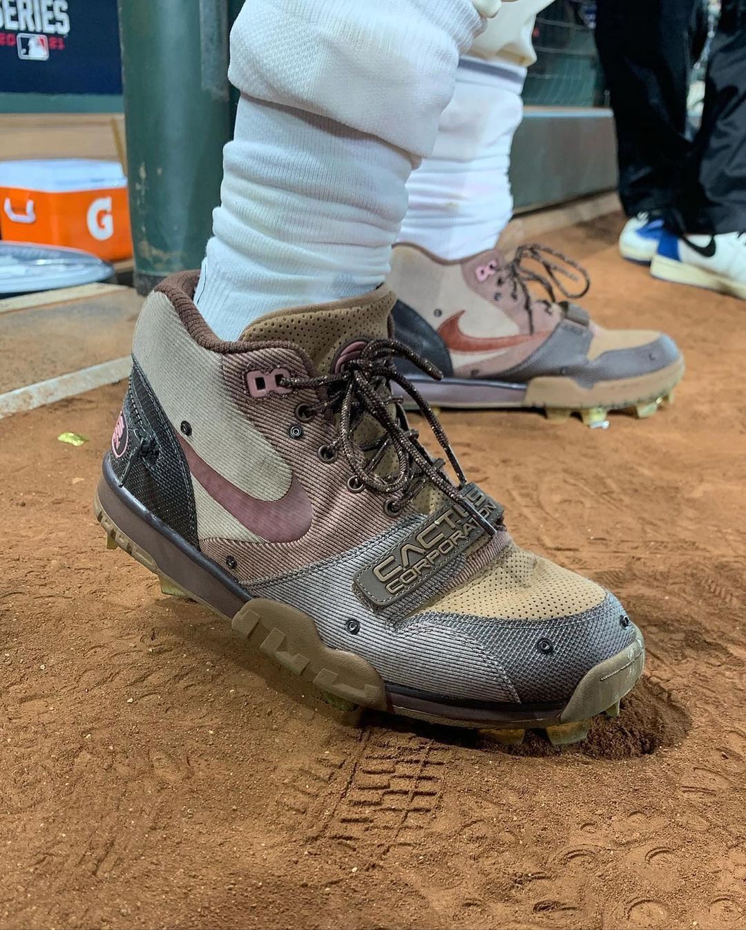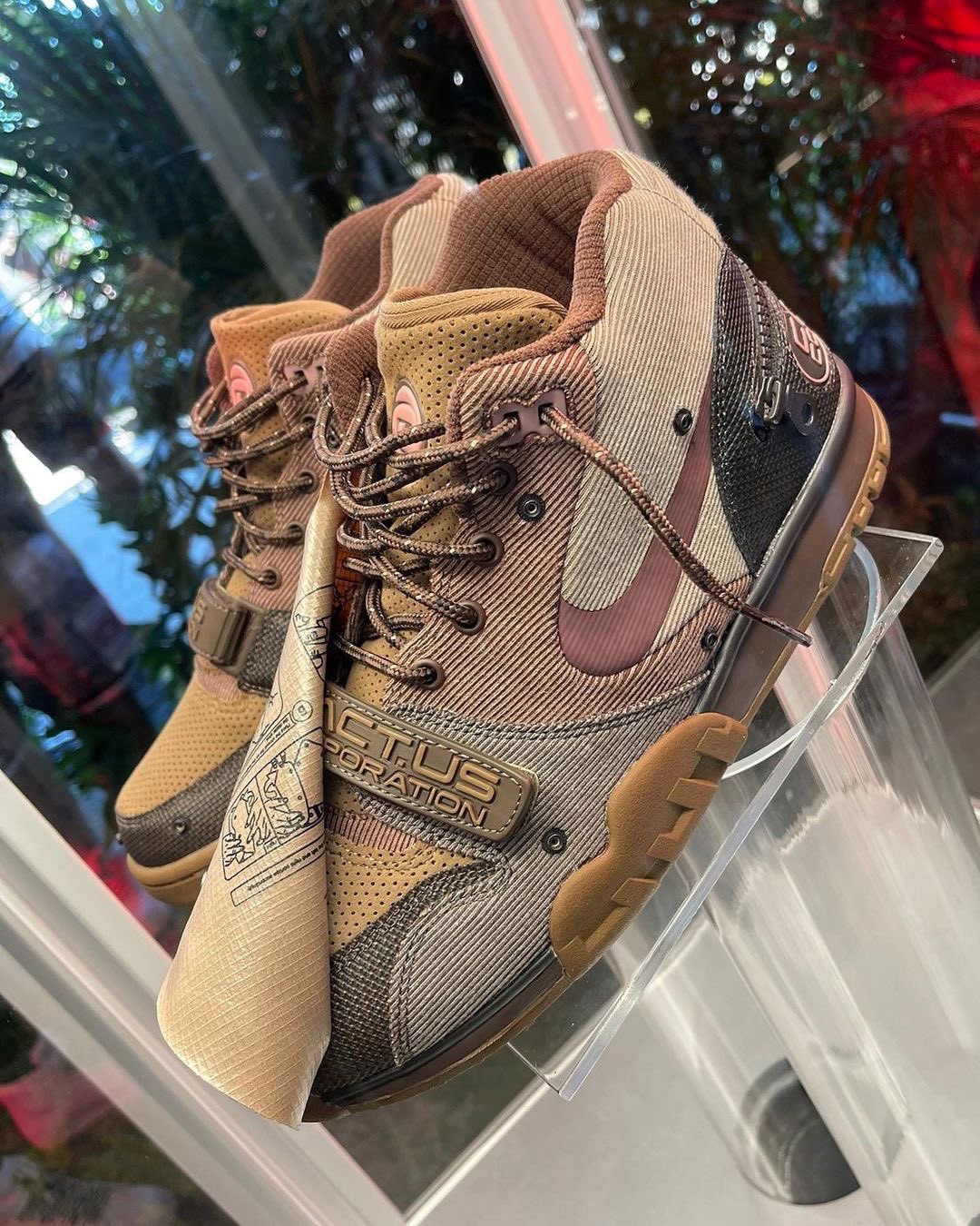 鞋头绑带处的 CACTUS 字样,鞋身内侧的「反勾」造型绝对是整双鞋最大的亮点,棕色 Swoosh Logo 搭配圆柱形鞋带,营造出浓郁的户外气质,更彰显出联名身份。
