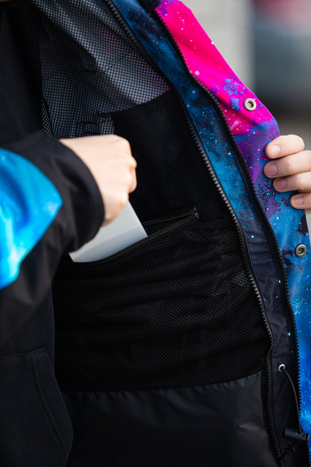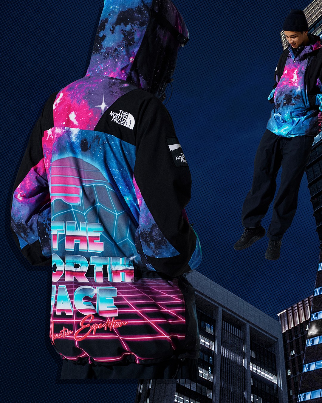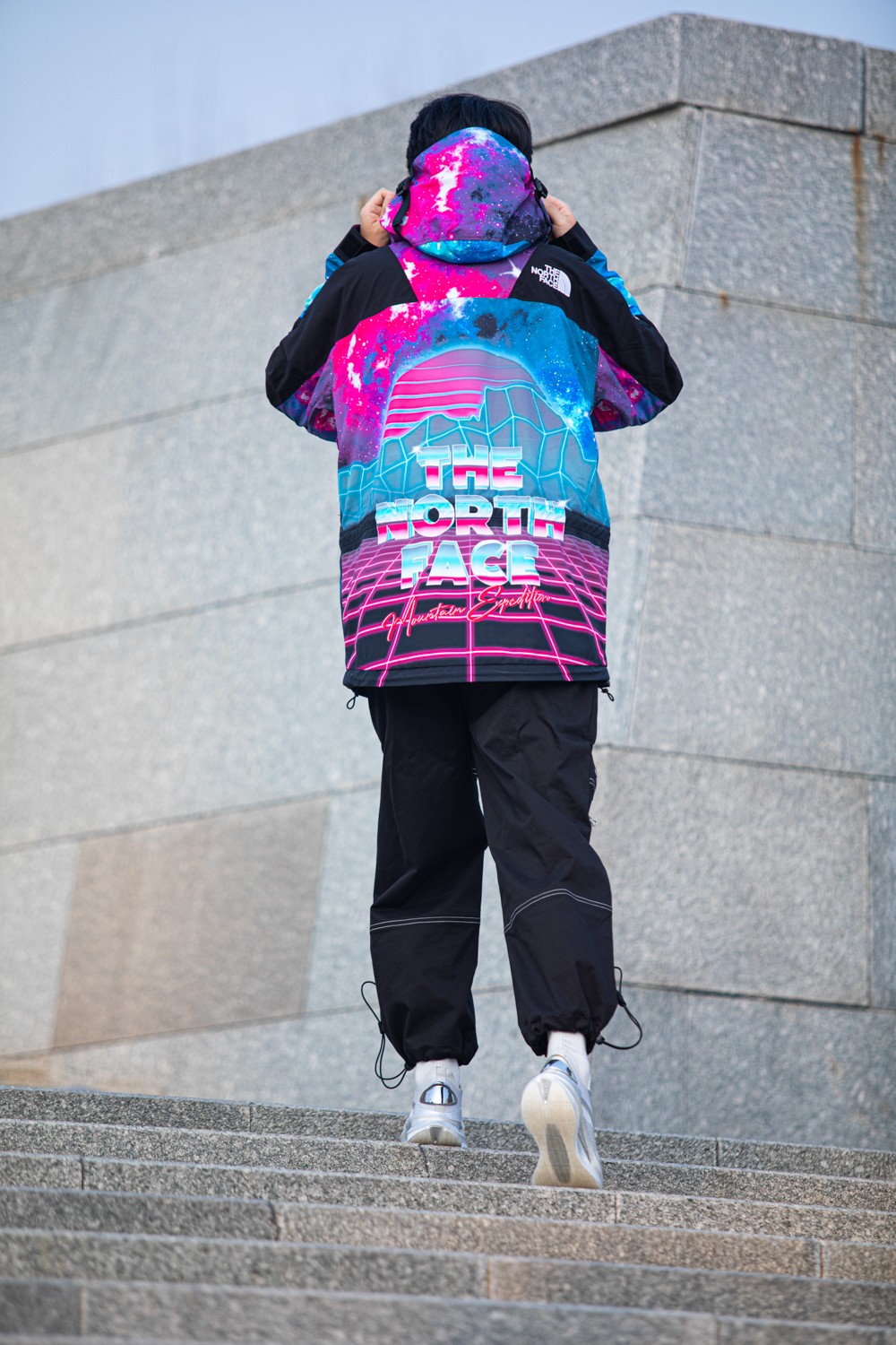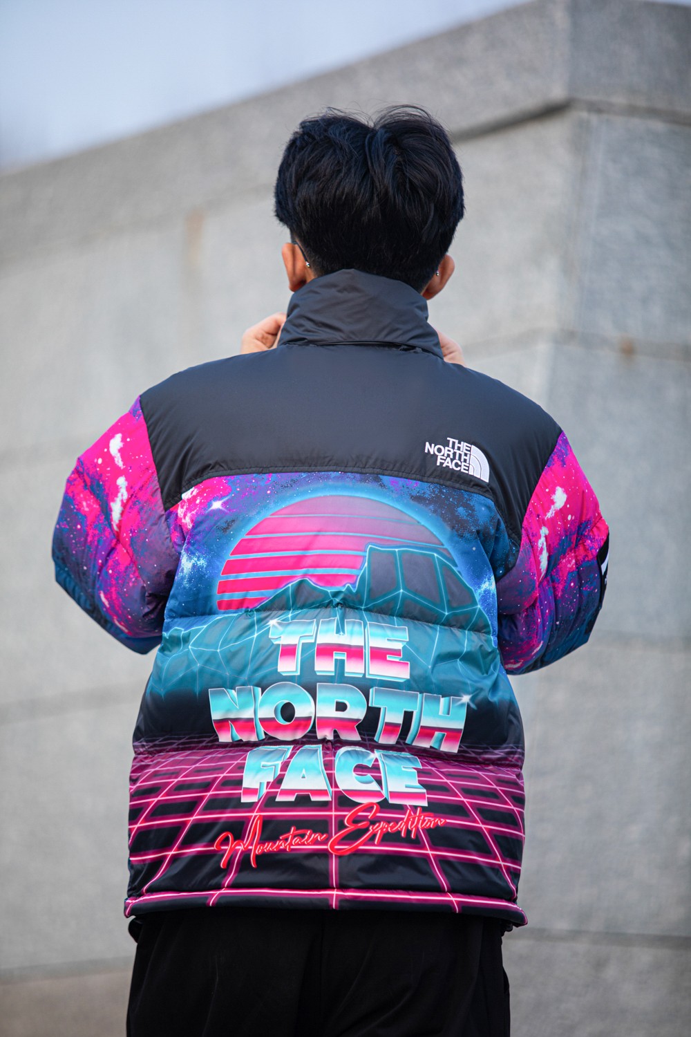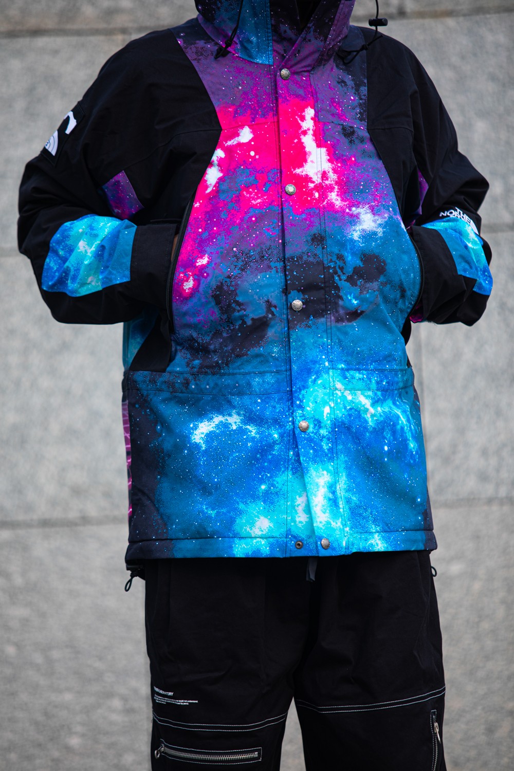不同于 The North Face 羽绒服经典的撞色设计,此次合作将炫酷的霓虹和宇宙星空图案注入单品,营造出赛博朋克的未来感。