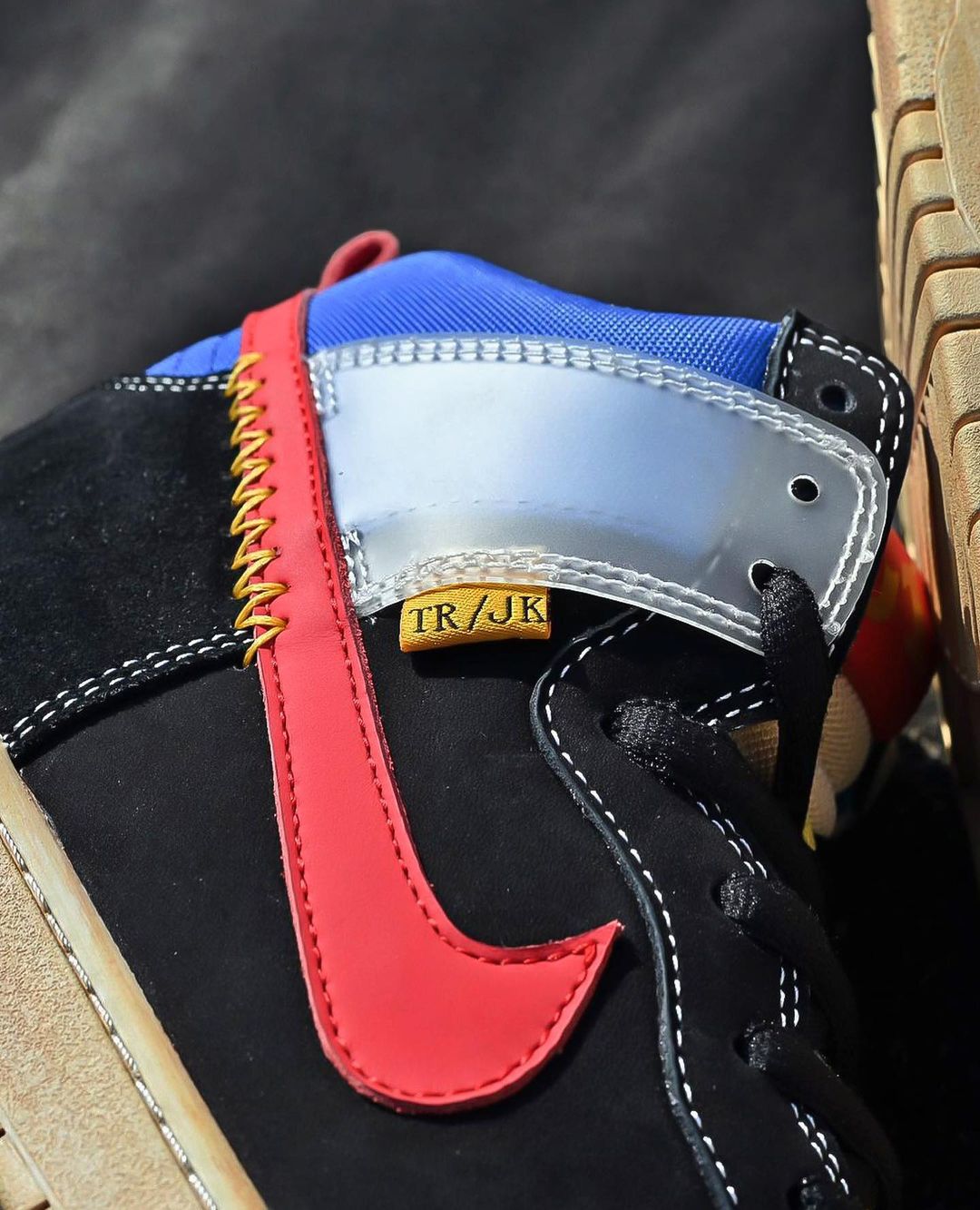 醒目的 UN / LA 标签改为 TR / JK 字样,搭配拼接处夸张的车线造型,更符合近年大热的解构理念。