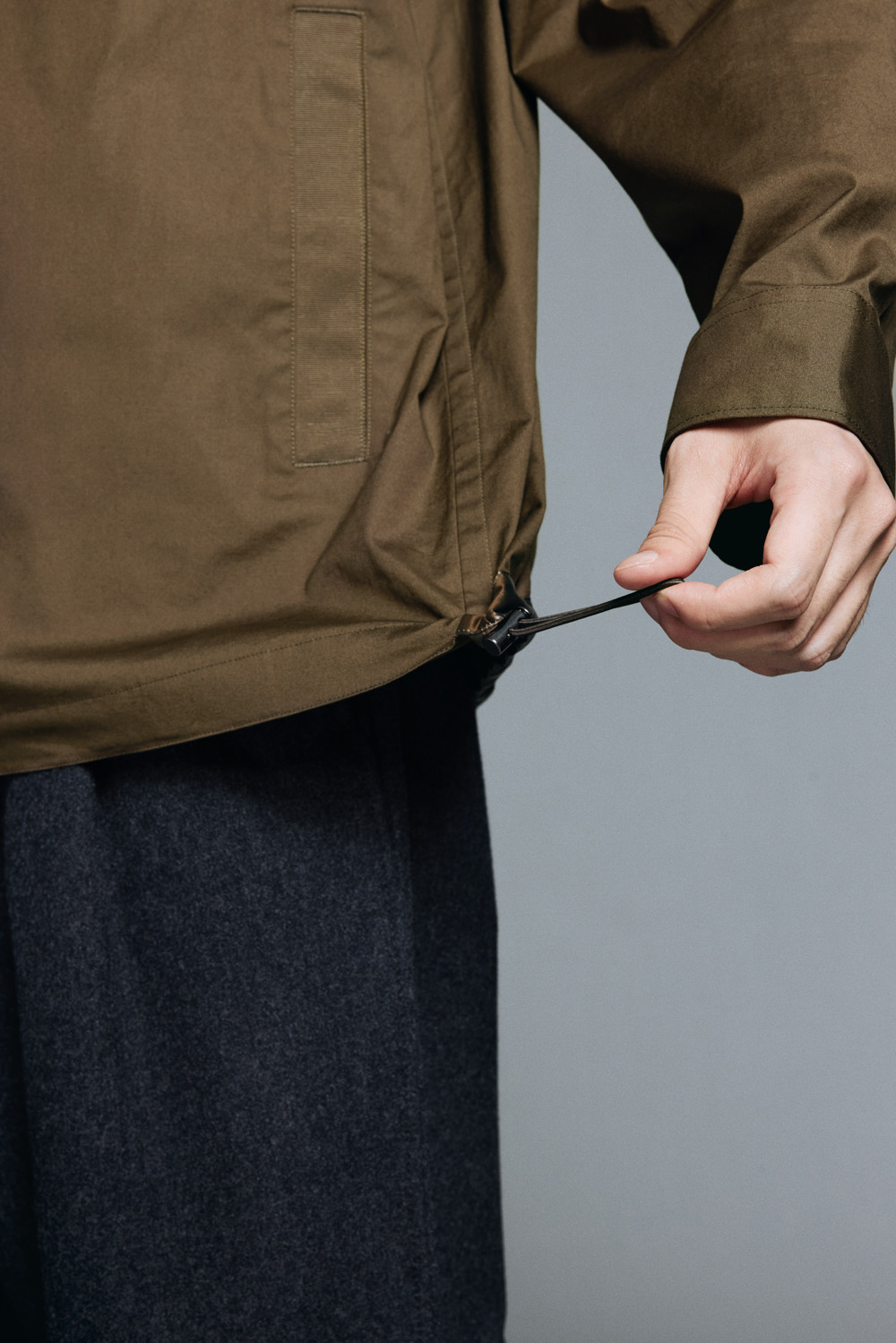 仔细看就能发现缝线与内衬都很讲究,每处细节都经过深思熟虑;下摆抽绳可调节方便外搭,兼具机能风格与实用性。