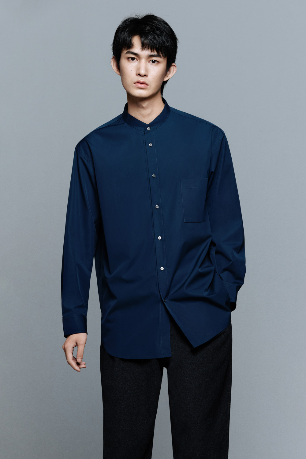 ▼ +J 宽松立领衬衫