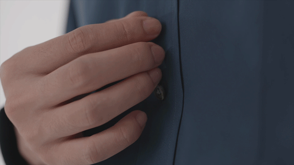 弹性棉混纺拼接金属光感面料,口袋罗缎饰边,在视觉上体现先锋未来感。