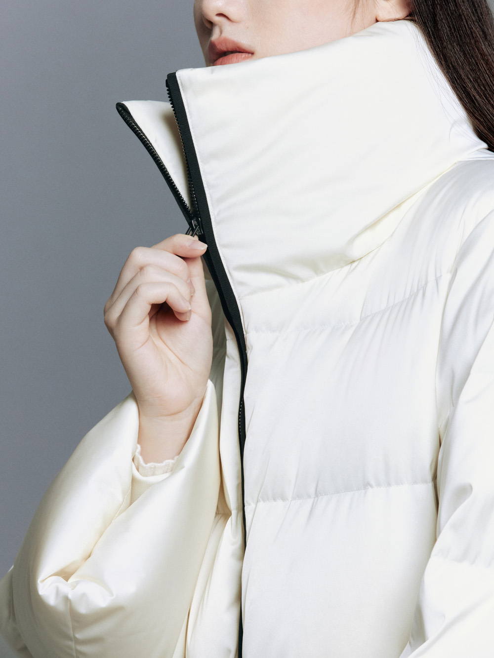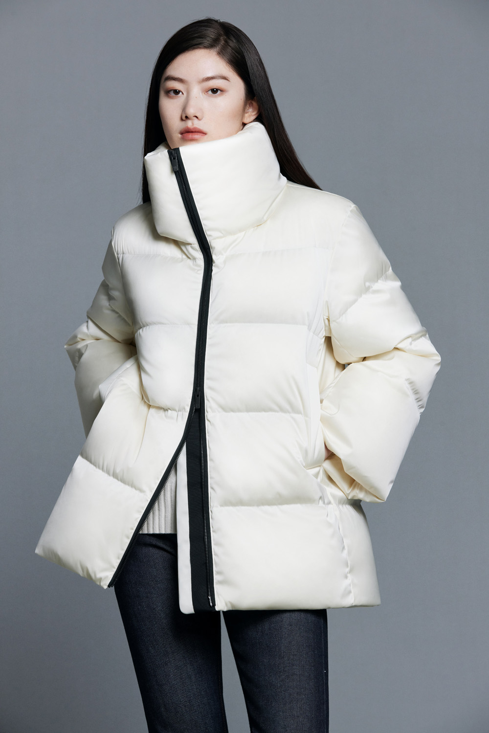 Jil Sander 标志性的建筑感线条在整体版型与袖口设计上都有体现,让保暖的羽绒服更多了一分时尚魅力。