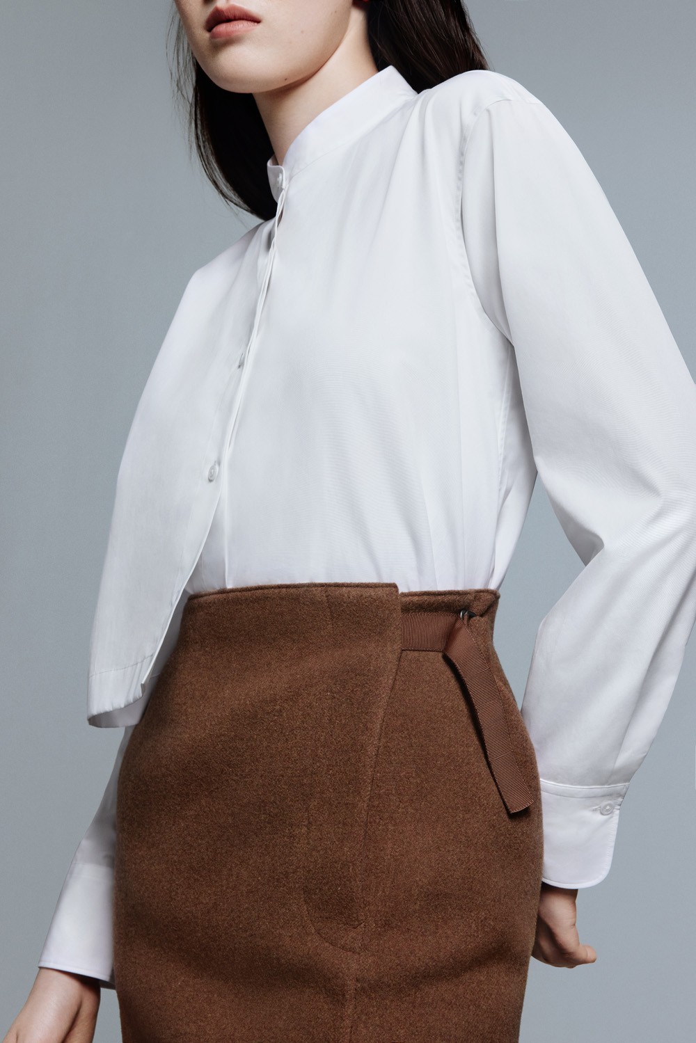 想要更百搭还有一款隽永时装衬衫,硬挺立领和母贝纽扣这些小细节都十分精致,上身给人一种自信干练、优雅的感觉。