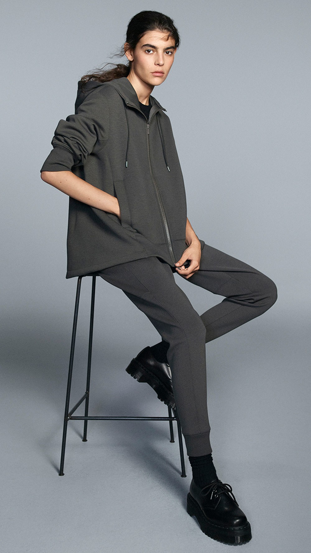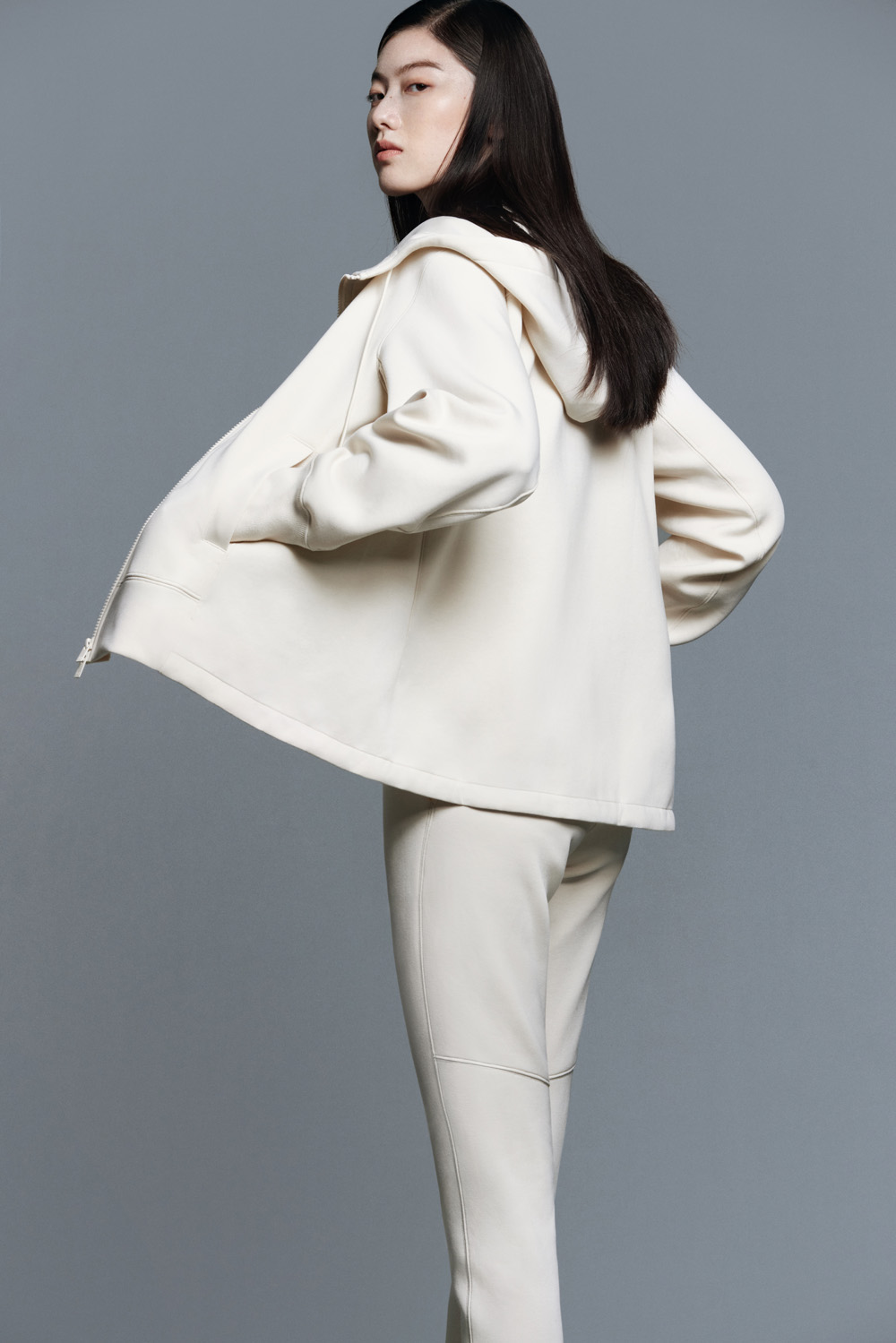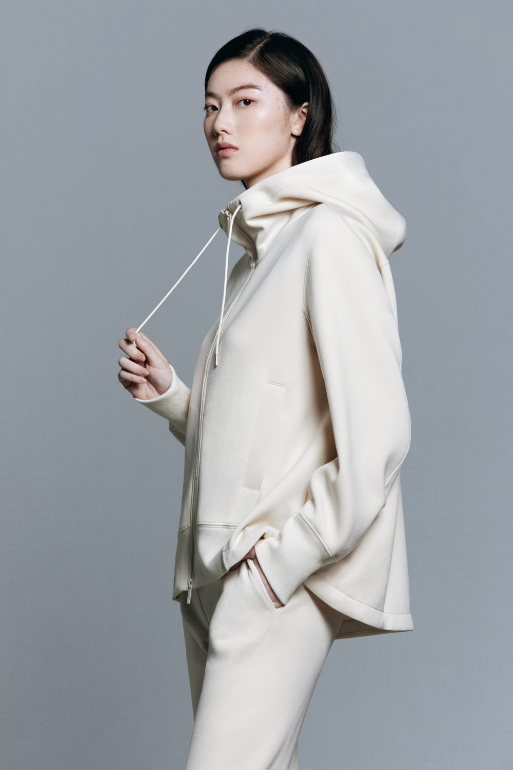运动连帽衫是特别的 A 字立体版型,宽松舒适又更多一分精致感。
