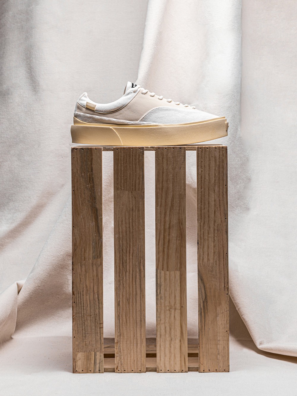 整双鞋采用帆布和灯芯绒材质打造,营造出简约百搭效果的同时,又有不错质感呈现,搭配氧化发黄的中底,正符合当下流行的复古风。