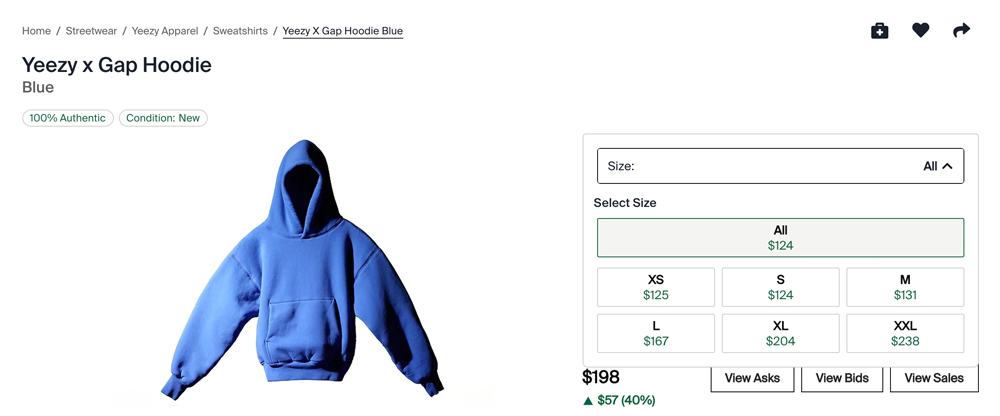 StockX 上的市场价格基本都在 $120~$250 美元之间,其中大码价格更高。