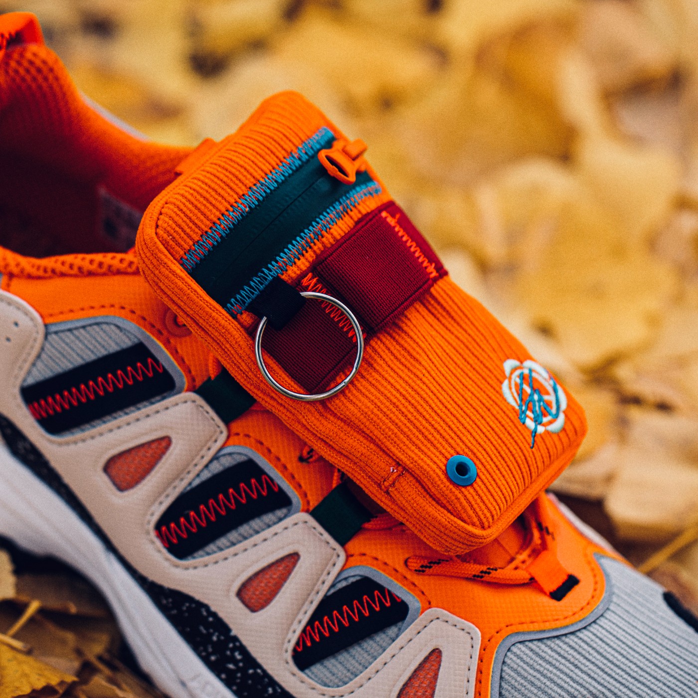 宽大的前掌能够让每一步落地都感到踏实,橙色灯芯绒小包作为配饰也能很好的呼应鞋身配色。