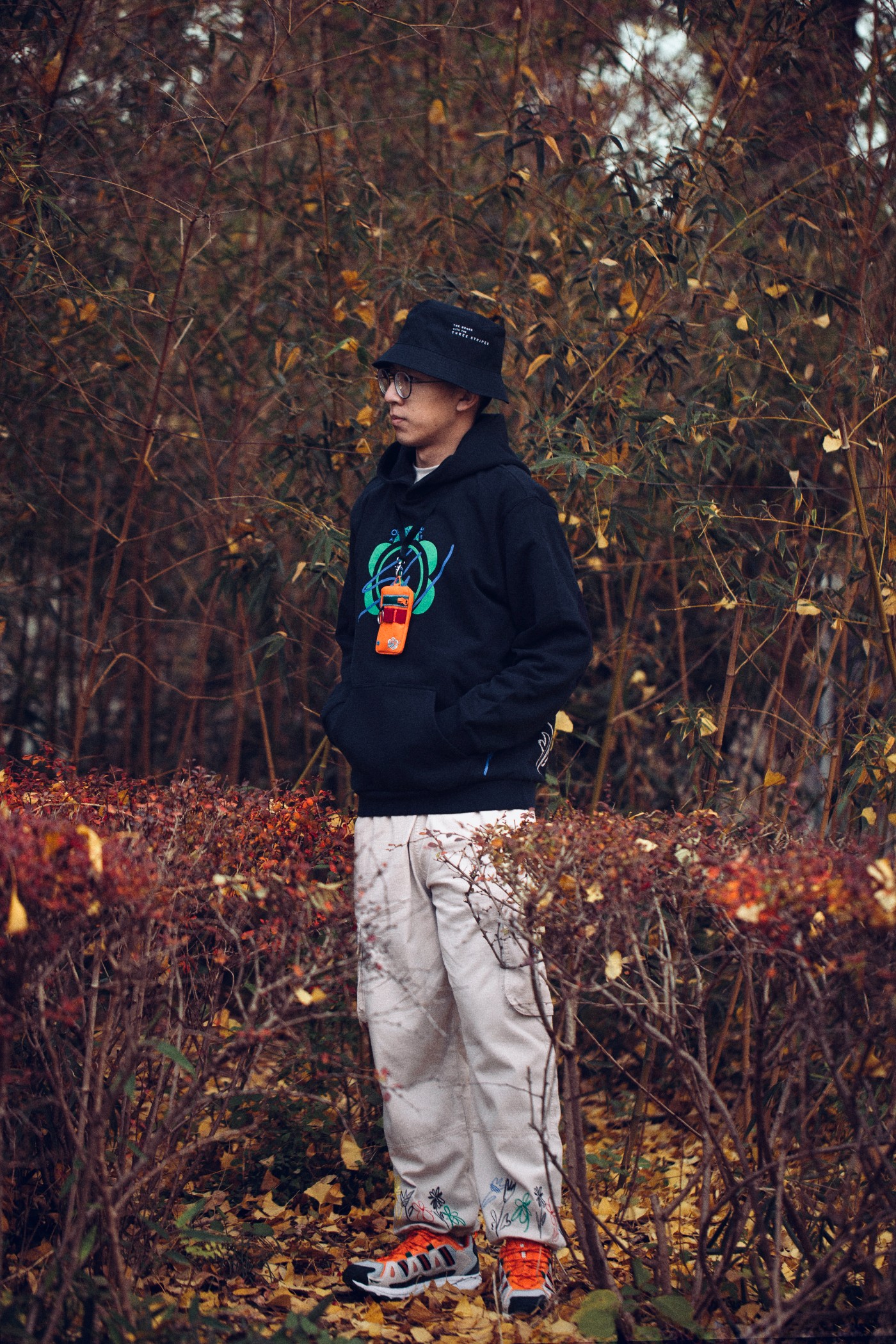 首先就是秋冬季节必备的帽衫,橙色主调搭配胸前 Sean Wotherspoon Logo 展现联名身份。