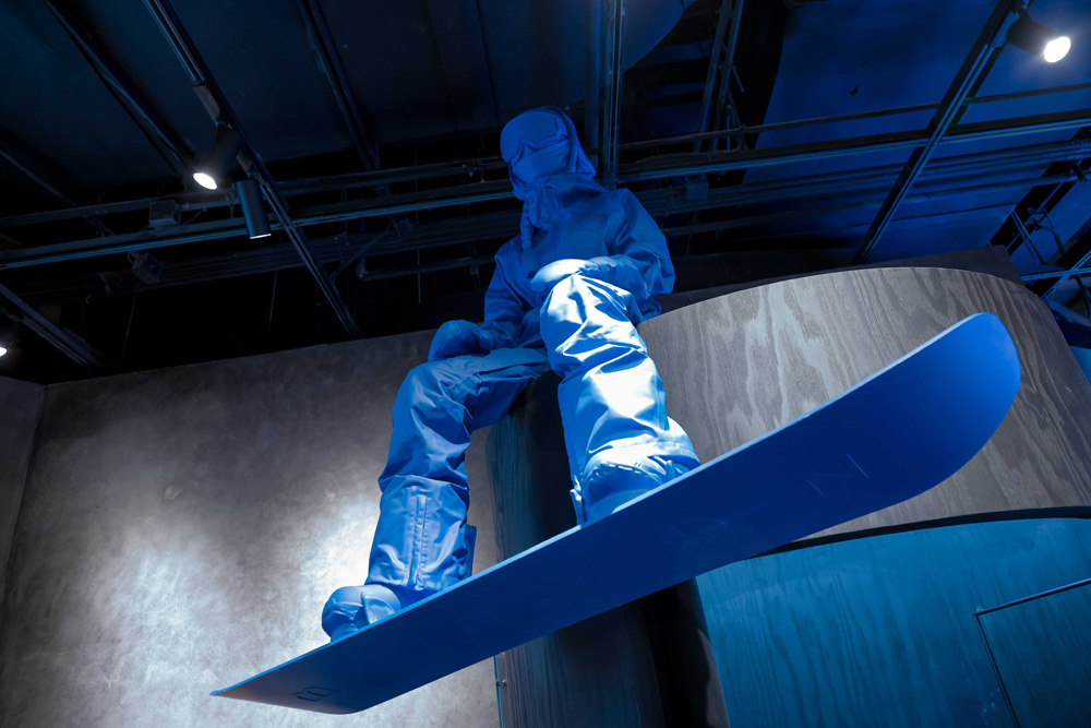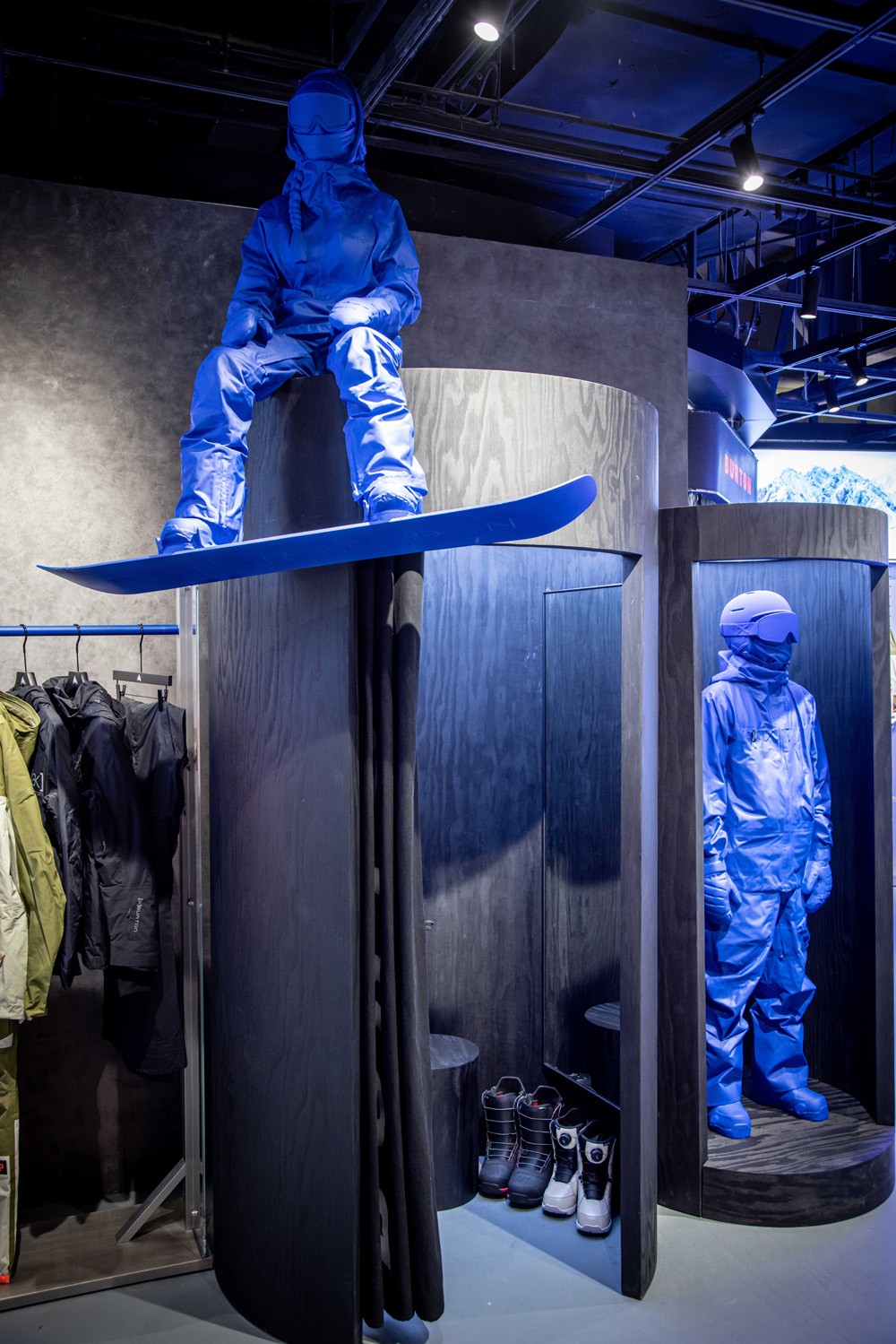 门店以 “FUTURE TRAVEL” 为设计灵感,采用蓝色调贯穿,为滑雪爱好者带来沉浸式购物体验。