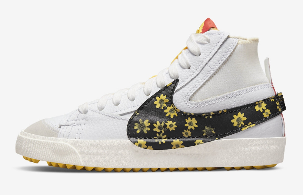 外露式的海绵鞋舌,沿袭了 Blazer 一贯设计风格,同时印有向日葵图案,彰显个性。