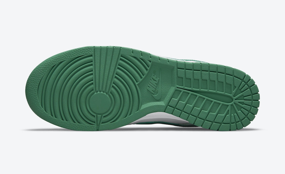 鞋身采用全皮面料打造而成,呈现良好质感表现,白色作为主体,绿色点缀在 Swoosh、外底和后跟处,呈现方式既简约又不失特点。