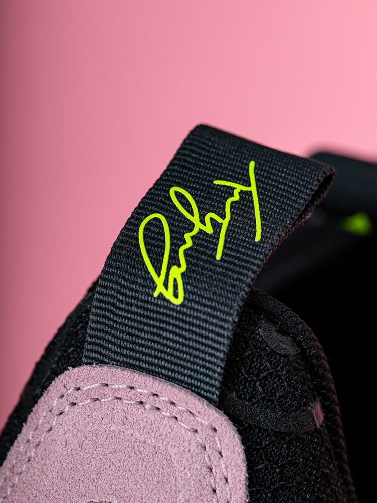 鞋款整体配色采用黑色和粉色作为搭配,整体视觉效果十分讨喜。