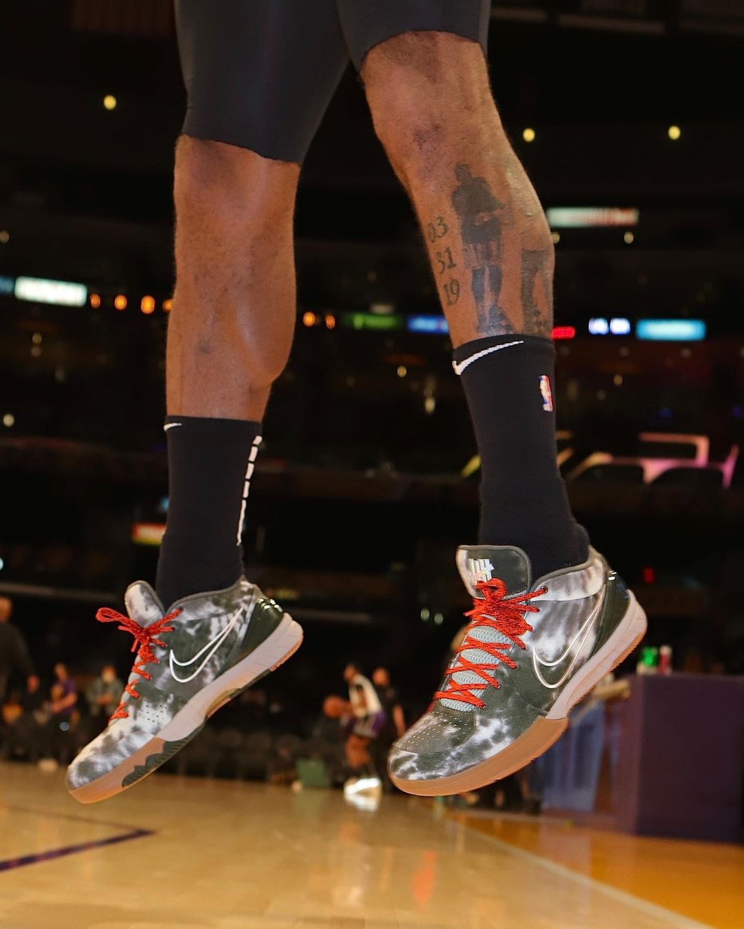 而这双正是年初 NBA 总决赛期间,对手德文·布克训练时上脚的未市售 UNDFTD x Nike Kobe 4 Protro。