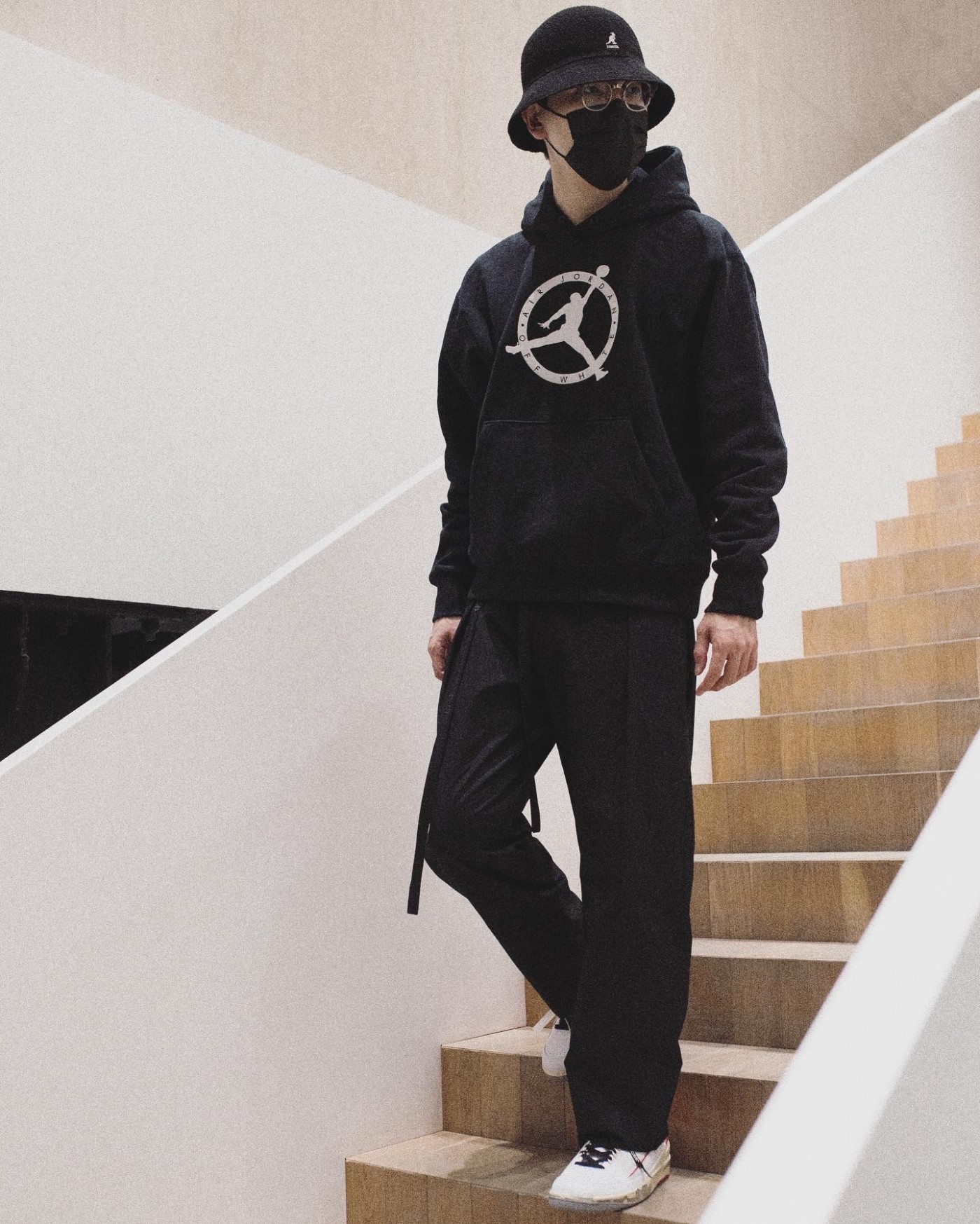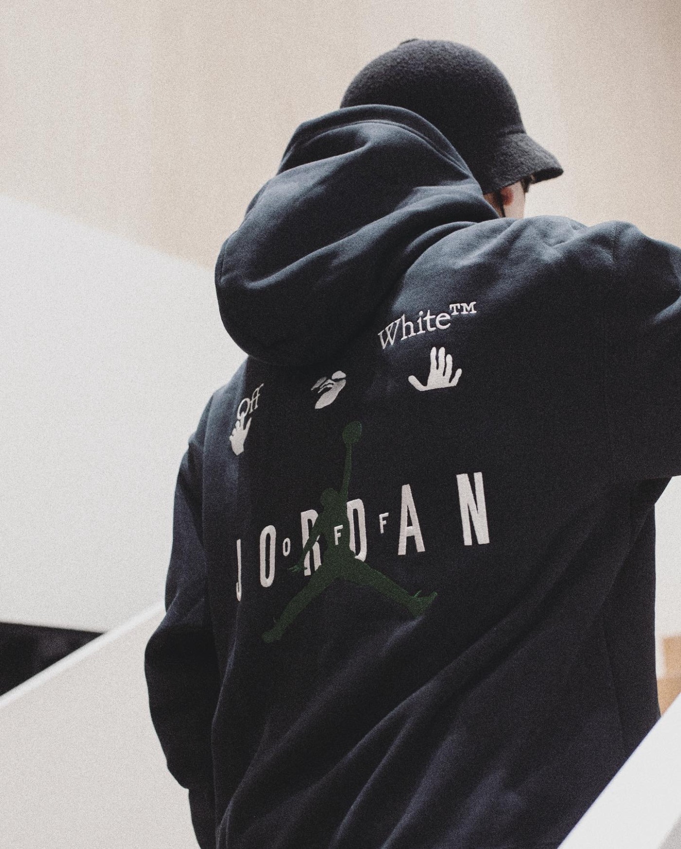 顺带说一句小编上身的黑色帽衫,是这次 OFF-WHITE x Jordan 服饰中小编最喜欢也是现在最应季的单品。