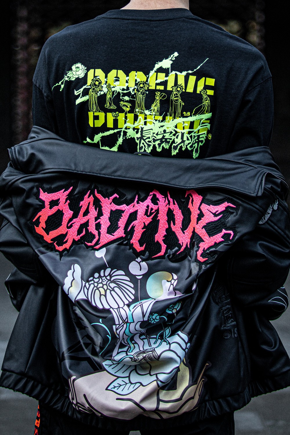 背后还有超大粉色 Badfive 刺绣字样和花卉图案,极具辨识度。