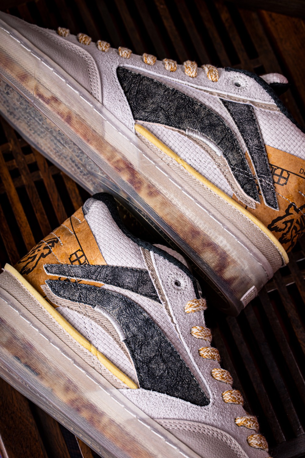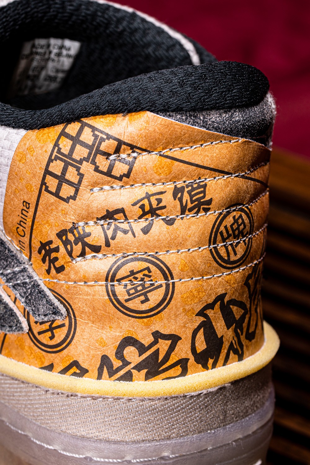 后跟的杜邦纸代表肉夹馍的纸袋,外底的图案则来自白吉馍表面的纹路。
