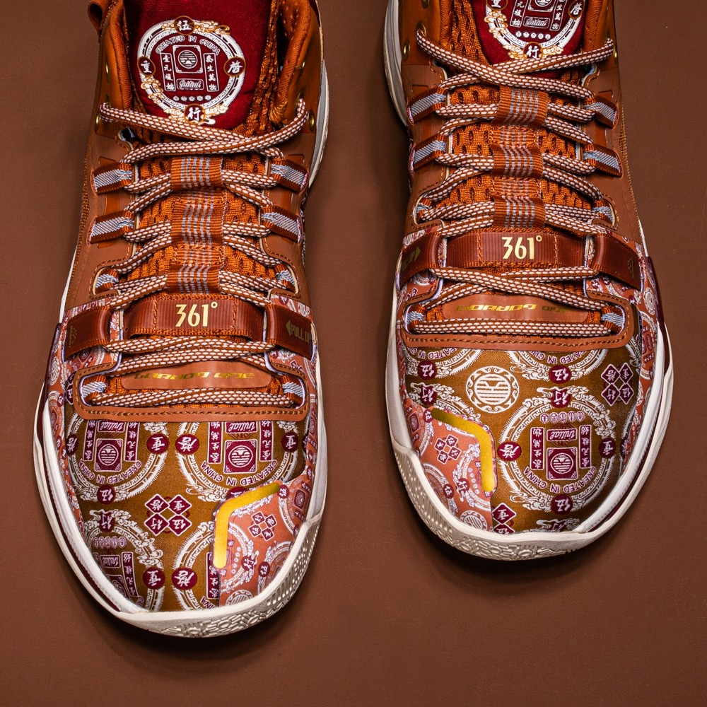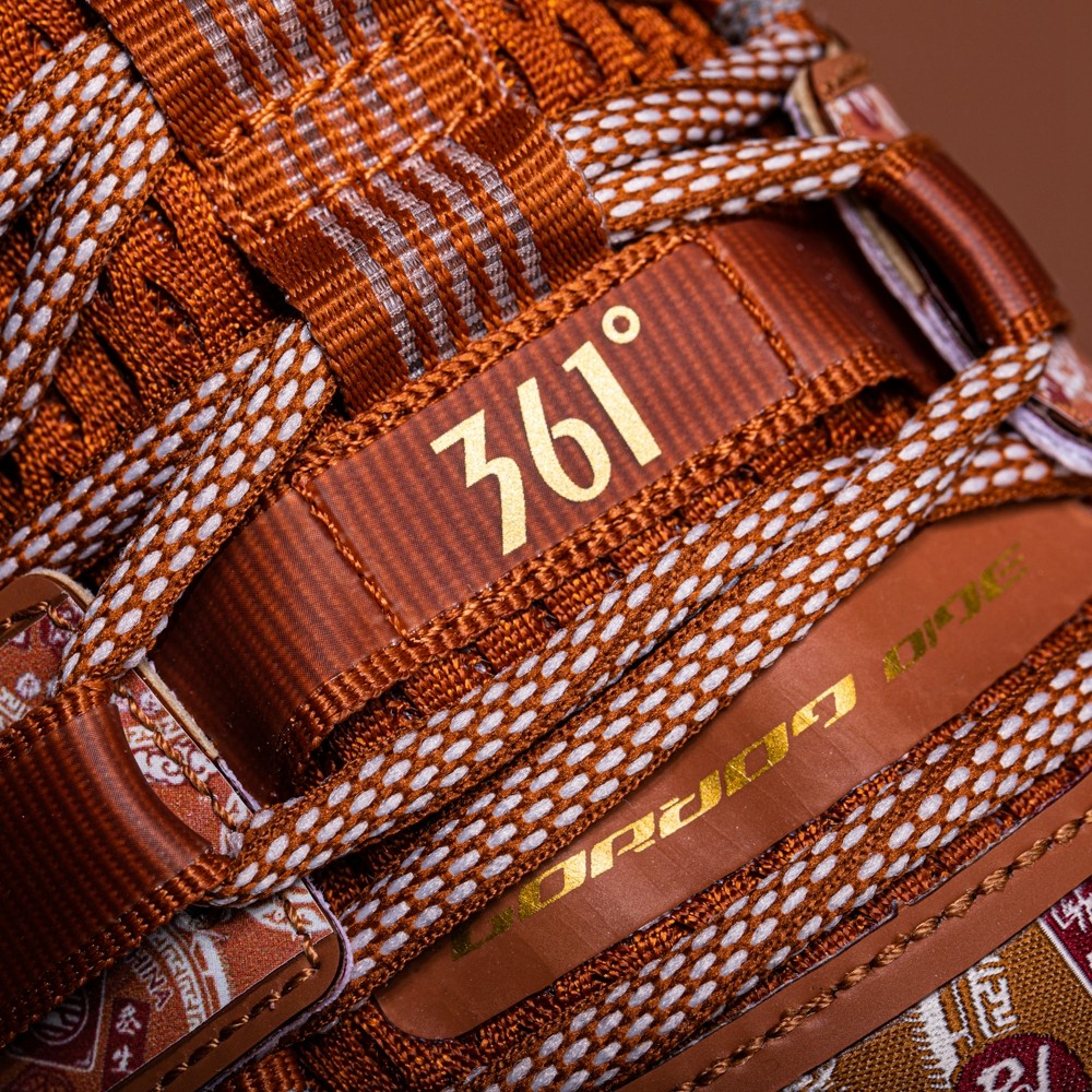 鞋舌末端的绑带上点缀金色 361° Logo,增添一抹亮眼细节。