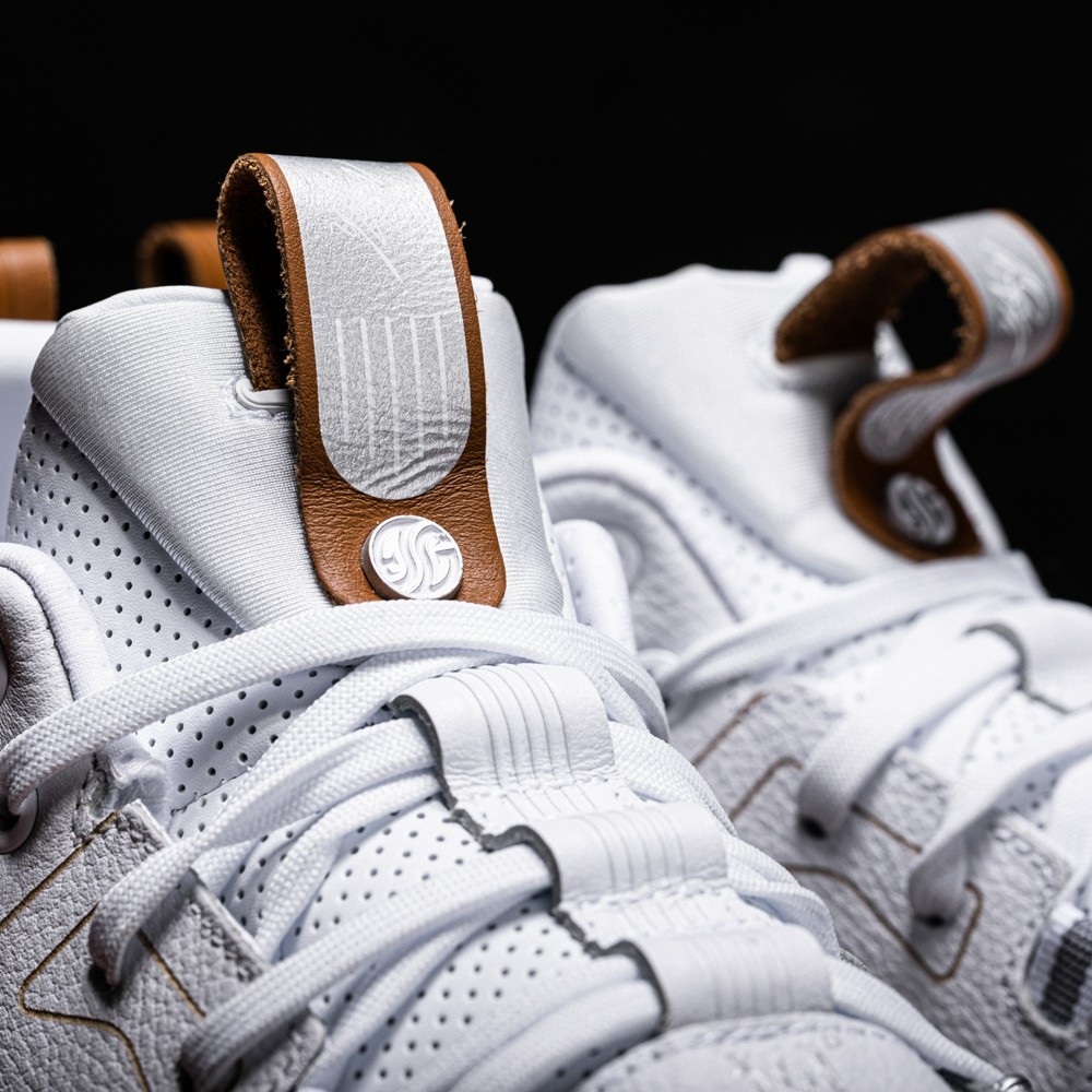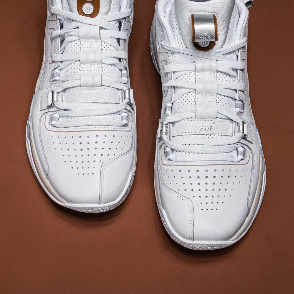 作为 AG 系列公认颜值最高的配色之一,「冰刀」这次依旧惊艳,鞋面采用纯白色的进口真皮皮革打造,质感表现不俗。