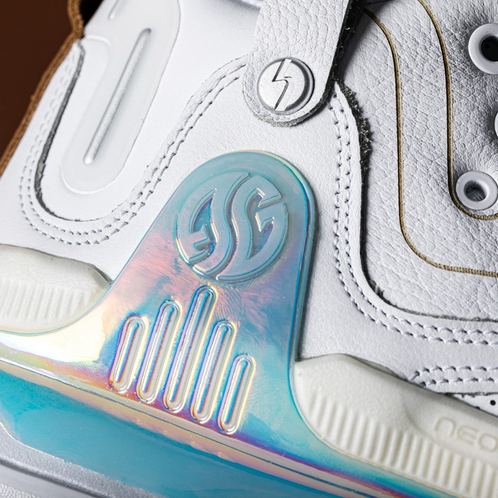 环绕整个中底的 TPU 以炫彩材质呈现,在光线照射下色彩不断变幻,带来冰块般晶莹剔透的感觉。