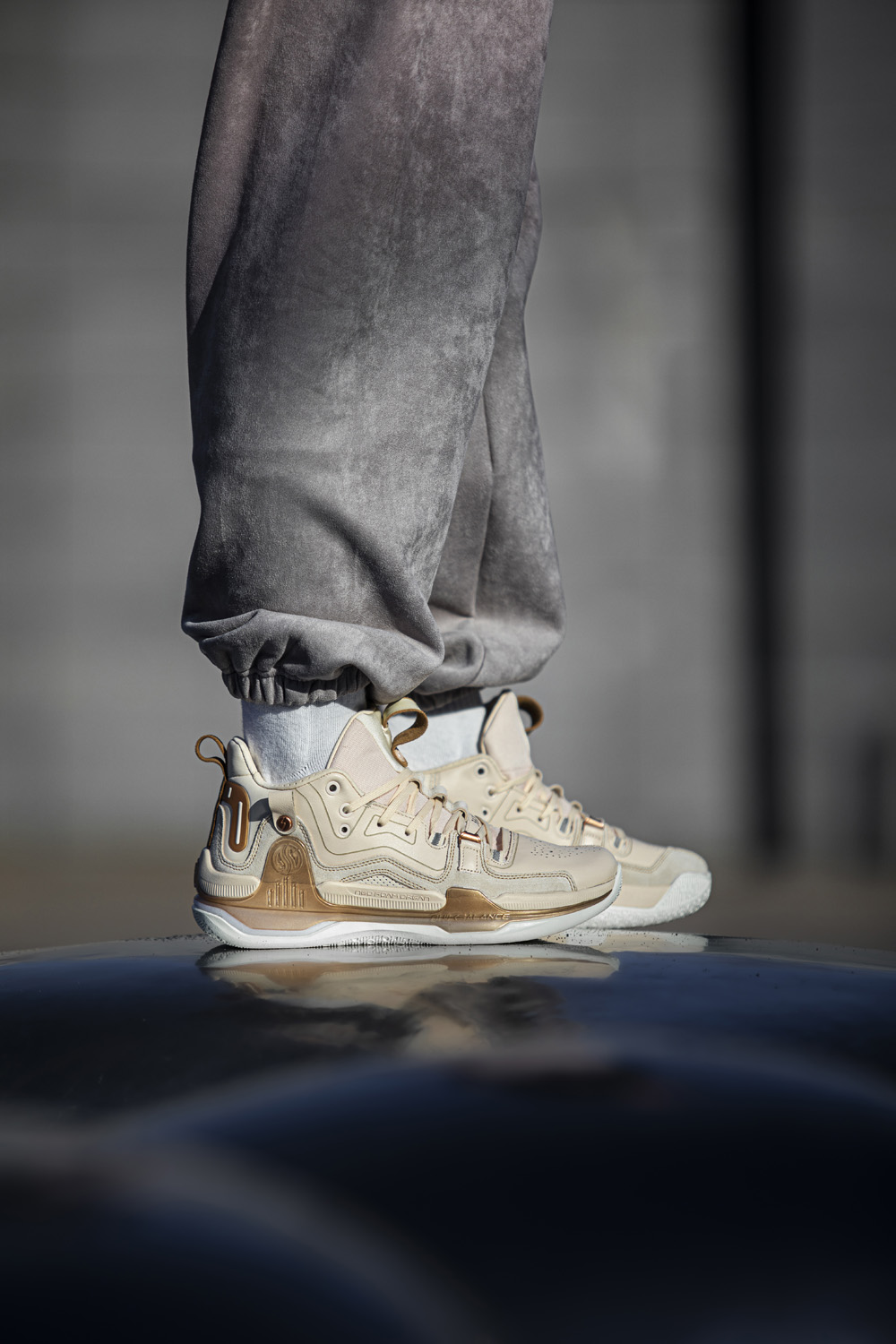 鞋舌的金属浮雕阿隆·戈登 Logo 同样统一为做旧古铜的质感。