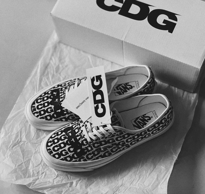 整双鞋延续 Vans 经典的帆布材质,将黑色 “CDG” 印花覆盖鞋身。