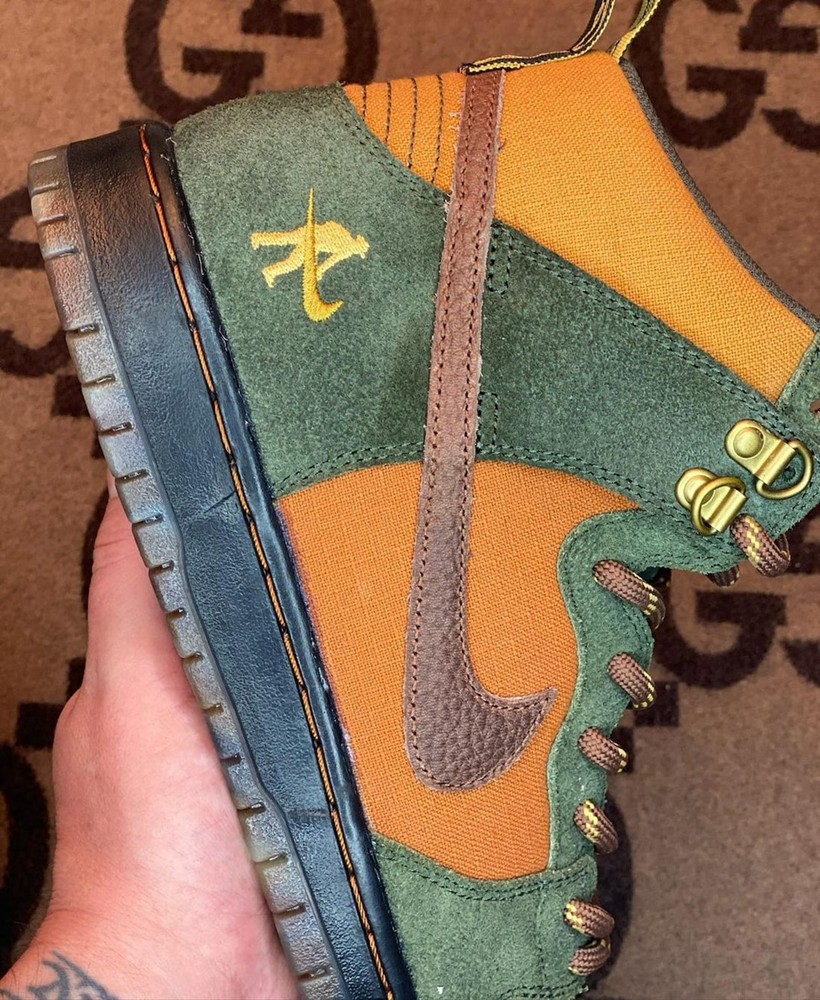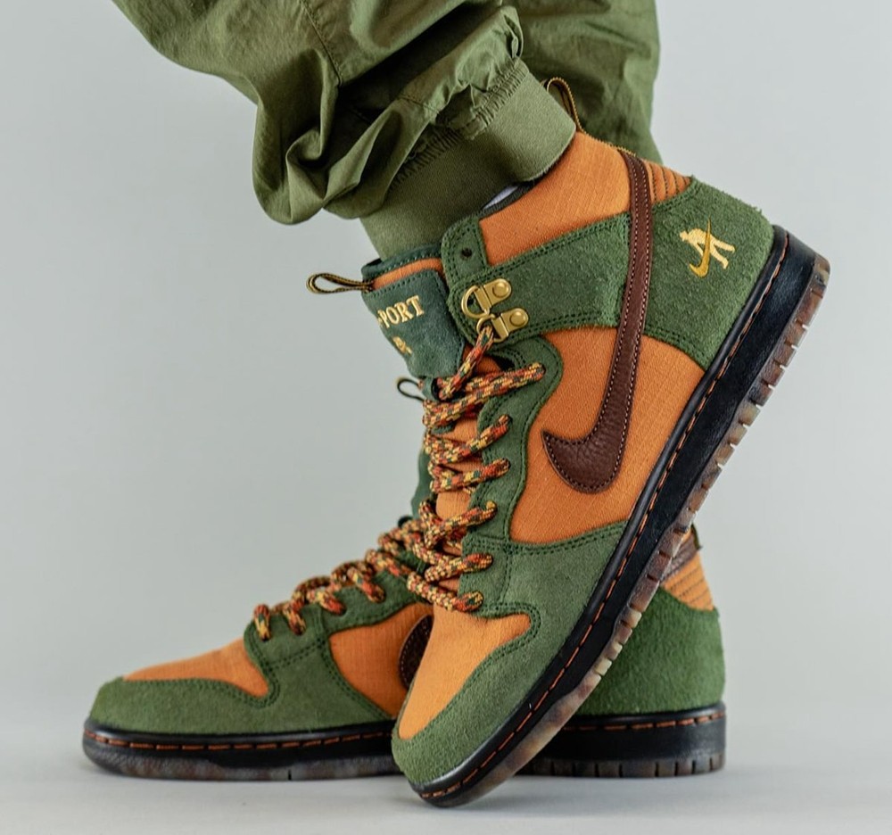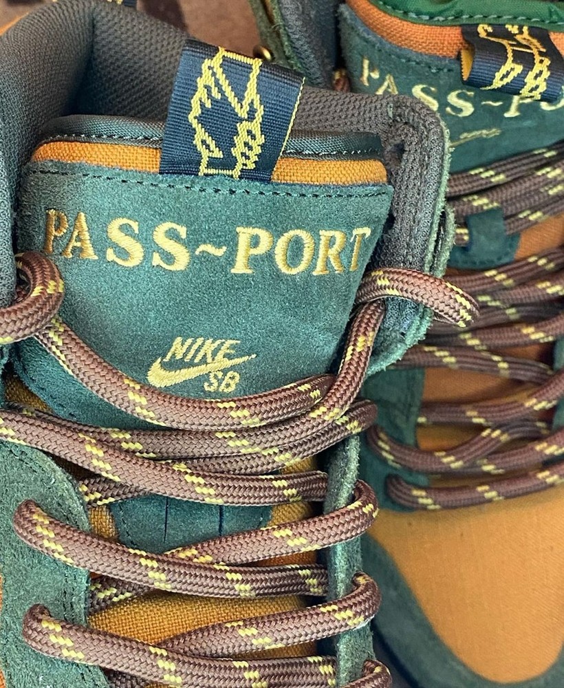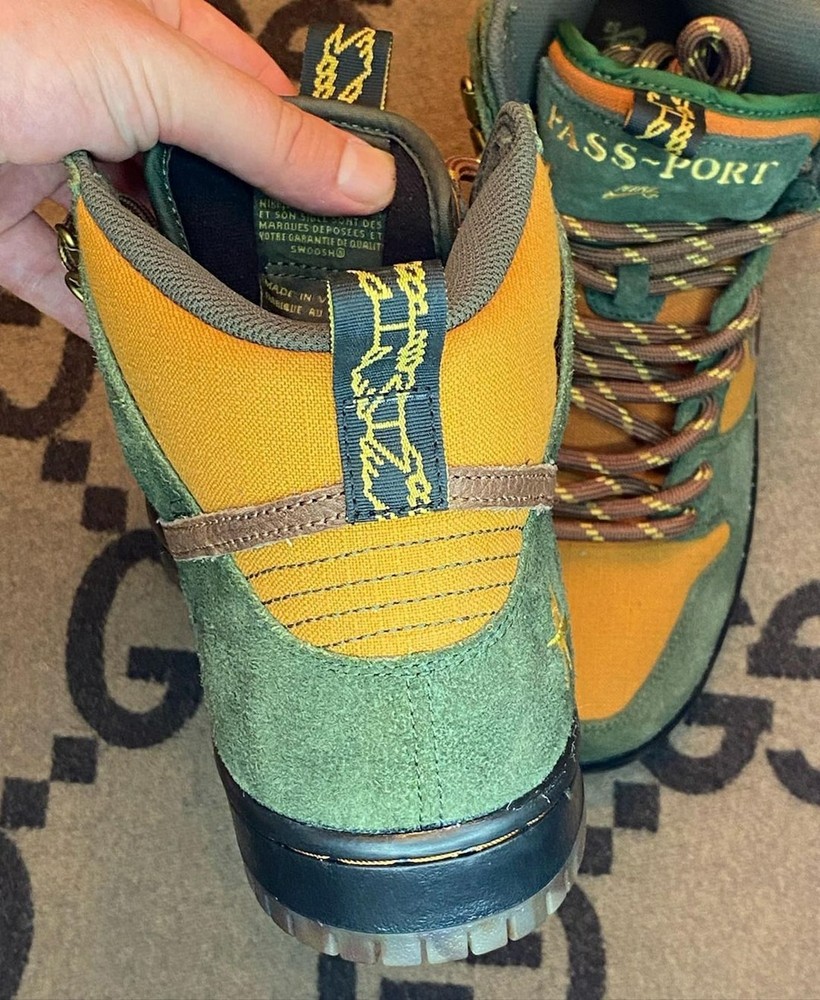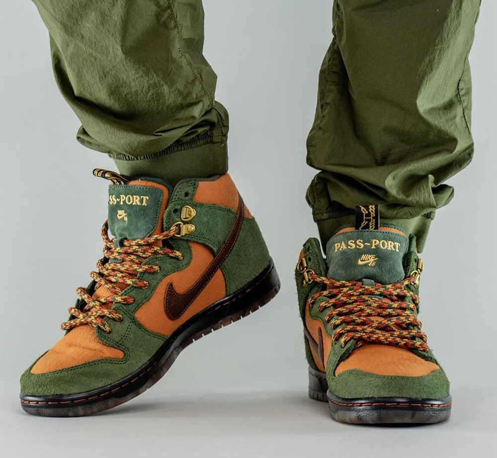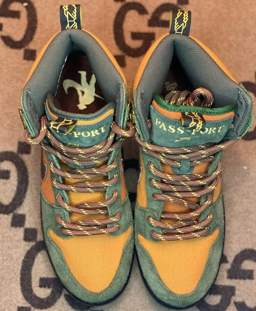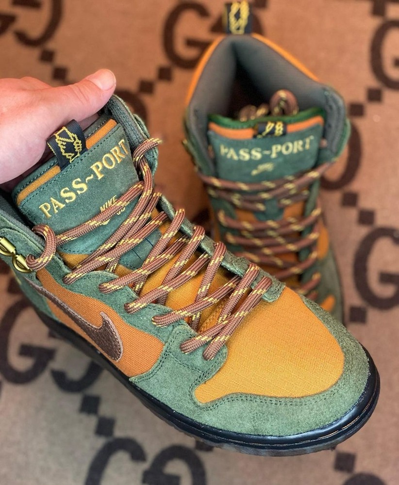 近日,又有一双全新联名 Pass~Port x Nike SB Dunk High “Workboot” 释出实物图片!