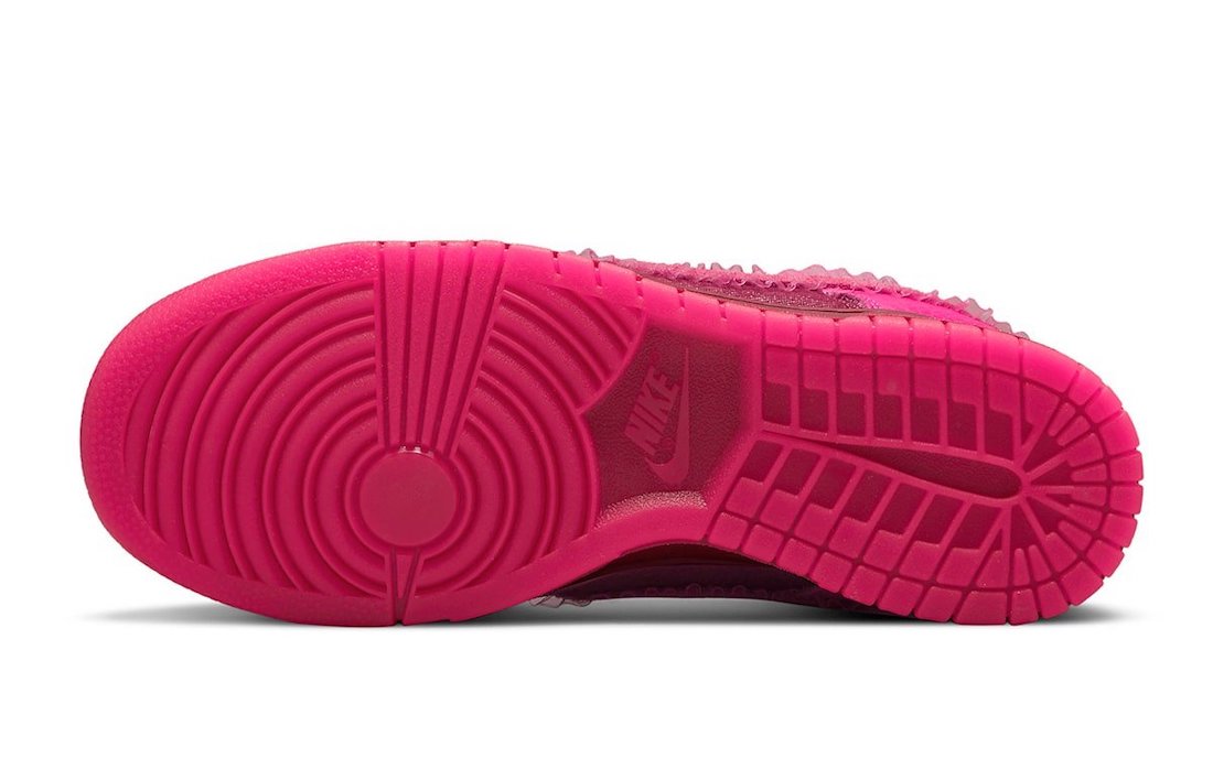 鞋身整体采用芭比粉覆盖,猛的一看有种 AMBUSH x Nike Dunk Hi 的既视感,视觉冲击相当强烈。