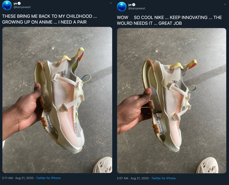 众所周知现在的 Yeezy 系列球鞋来自 adidas Originals,当年侃爷离开 Nike,双方的结局可以说是不欢而散。