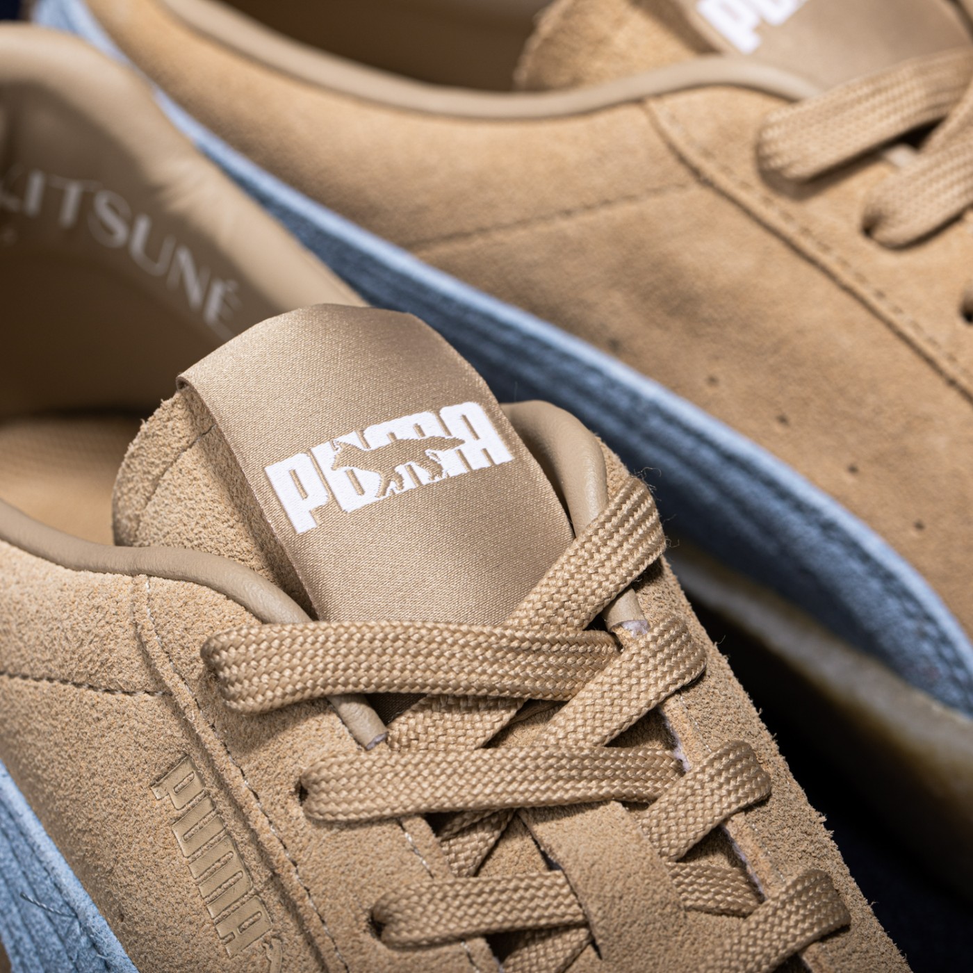 同时鞋垫、内里后跟点缀 MAISON KITSUNÉ 字样及 PUMA 美洲狮 Logo,低调彰显联名身份。