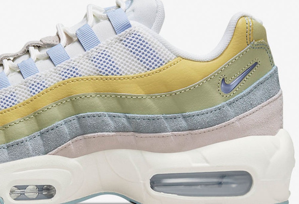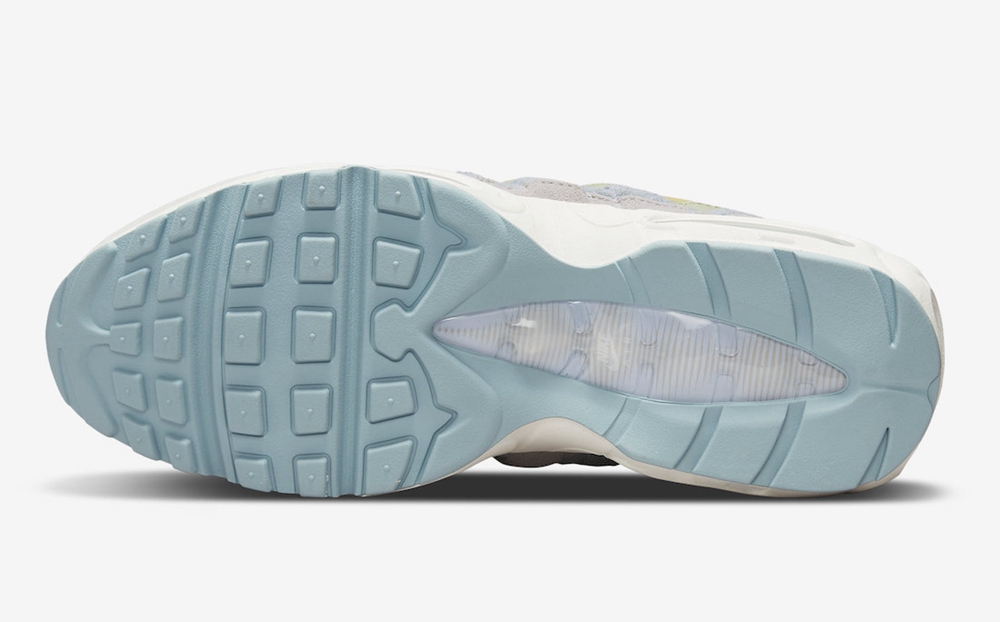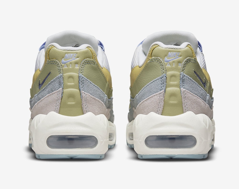 后跟处以塑料打造的 Swoosh 呈现气泡效果,与传统 Air Max 95 区别开来,为整双鞋增添细节。