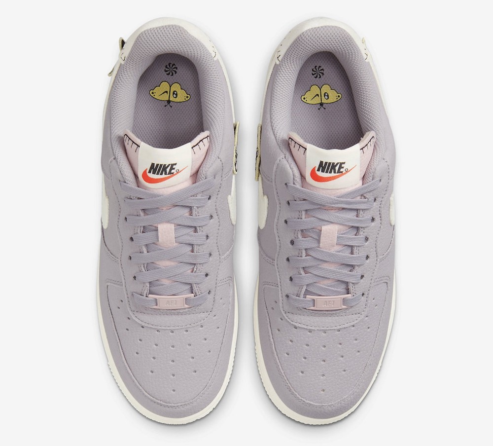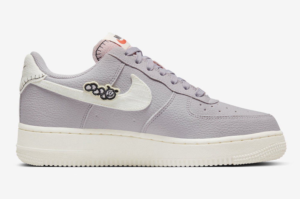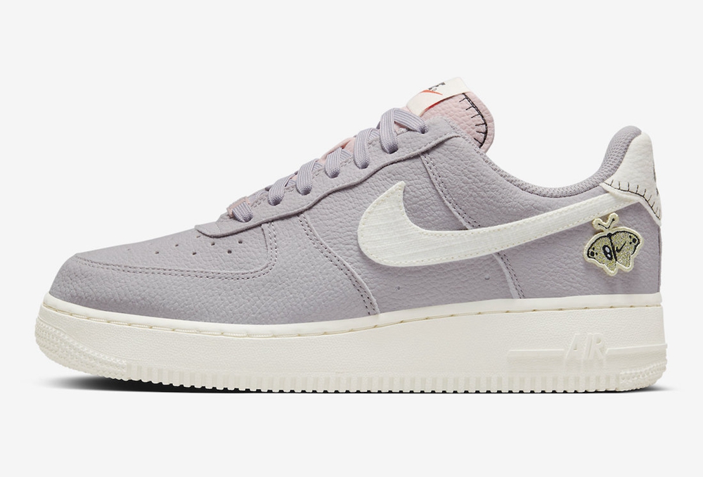 侧面 Swoosh 运用网布材质,点缀于鞋身,上方刺有毛毛虫图案,为整双鞋增添细几分可爱。