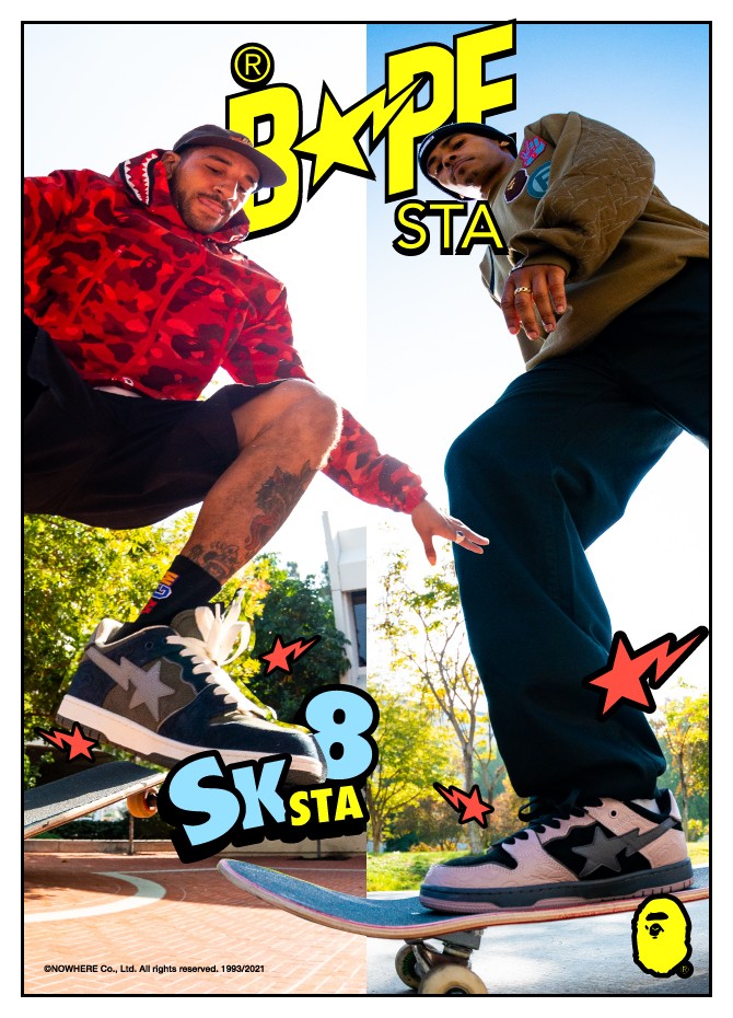 近日,再度带来两款全新配色的 BAPE® SK8 STA。