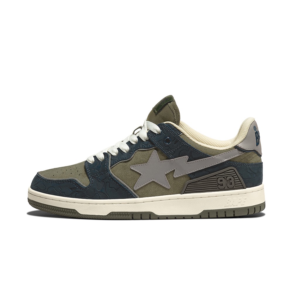 鞋身框架上带有 BAPE® 标志性的迷彩暗纹,相较于纯色而言更加富有街头气质。