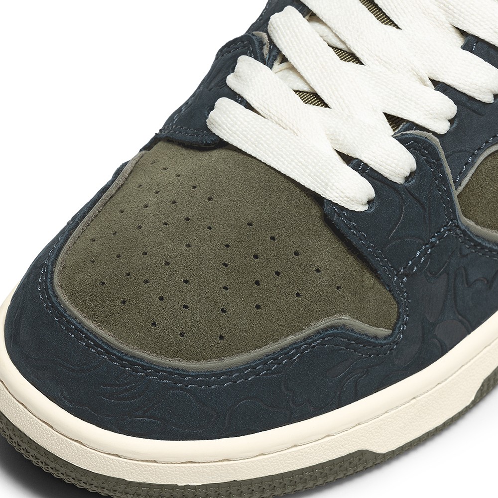另外一款小编更为喜欢,采用海军蓝色打造鞋身框架,鞋面辅以十分适合秋冬的军绿色覆盖。