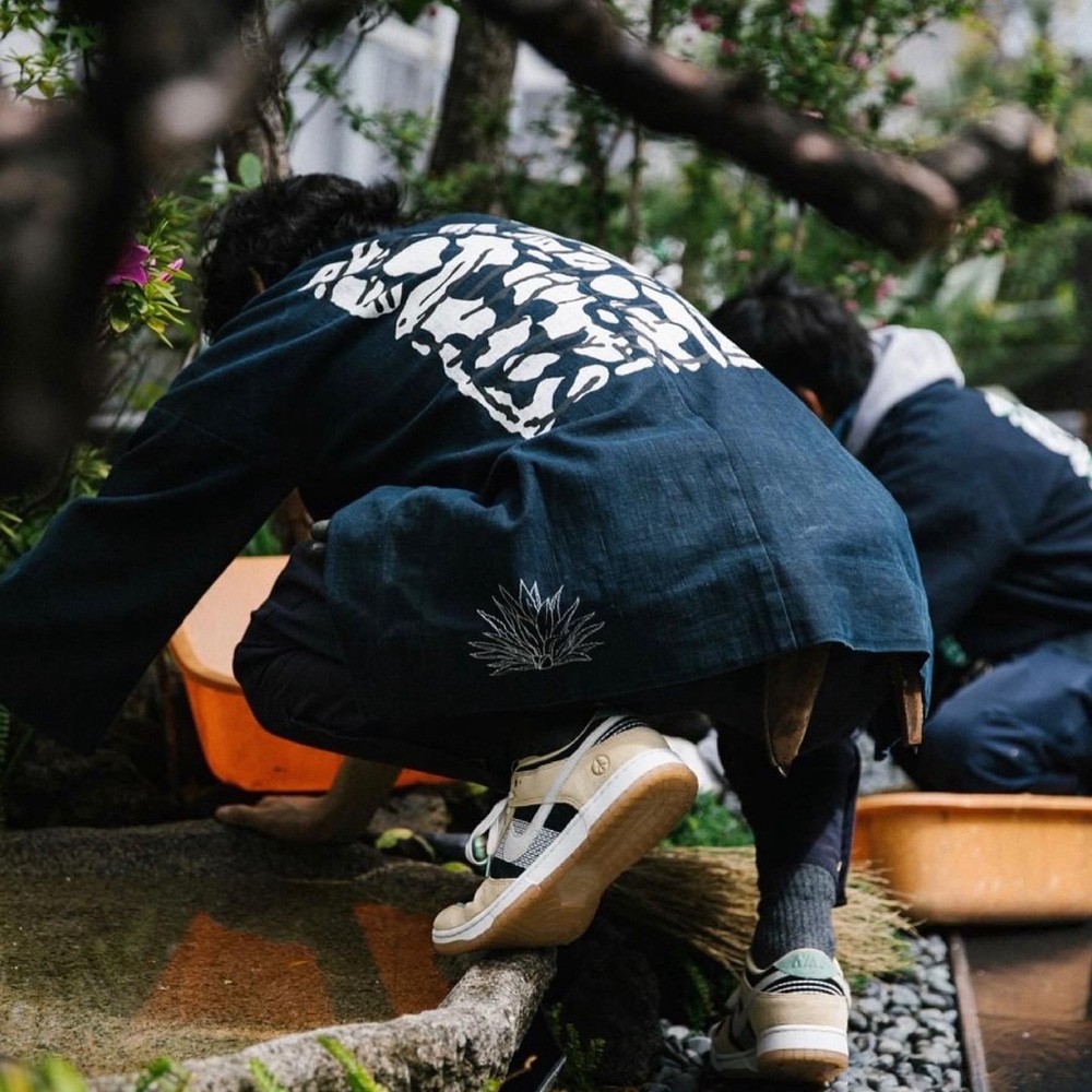整双鞋设计灵感源于日本园艺,配色以奶茶色为主调,白色 Swoosh 和黑色帆布材质中间缀有白色车线,象征日本服装文化,细节满满。