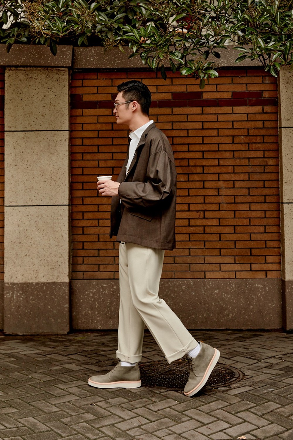 鞋面主色选用暗色调,搭配纯色大底,形成反差效果,接缝边线点缀细节,整体效果不管是在通勤路上,还是商务场景都相当适配。