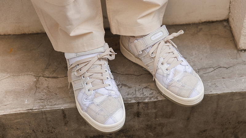 白色与淡粉色的和谐碰撞,加之 Forum Low 自带的复古气质,上脚效果清新脱俗,特有的手工改造元素,回头率自然也不必担心。