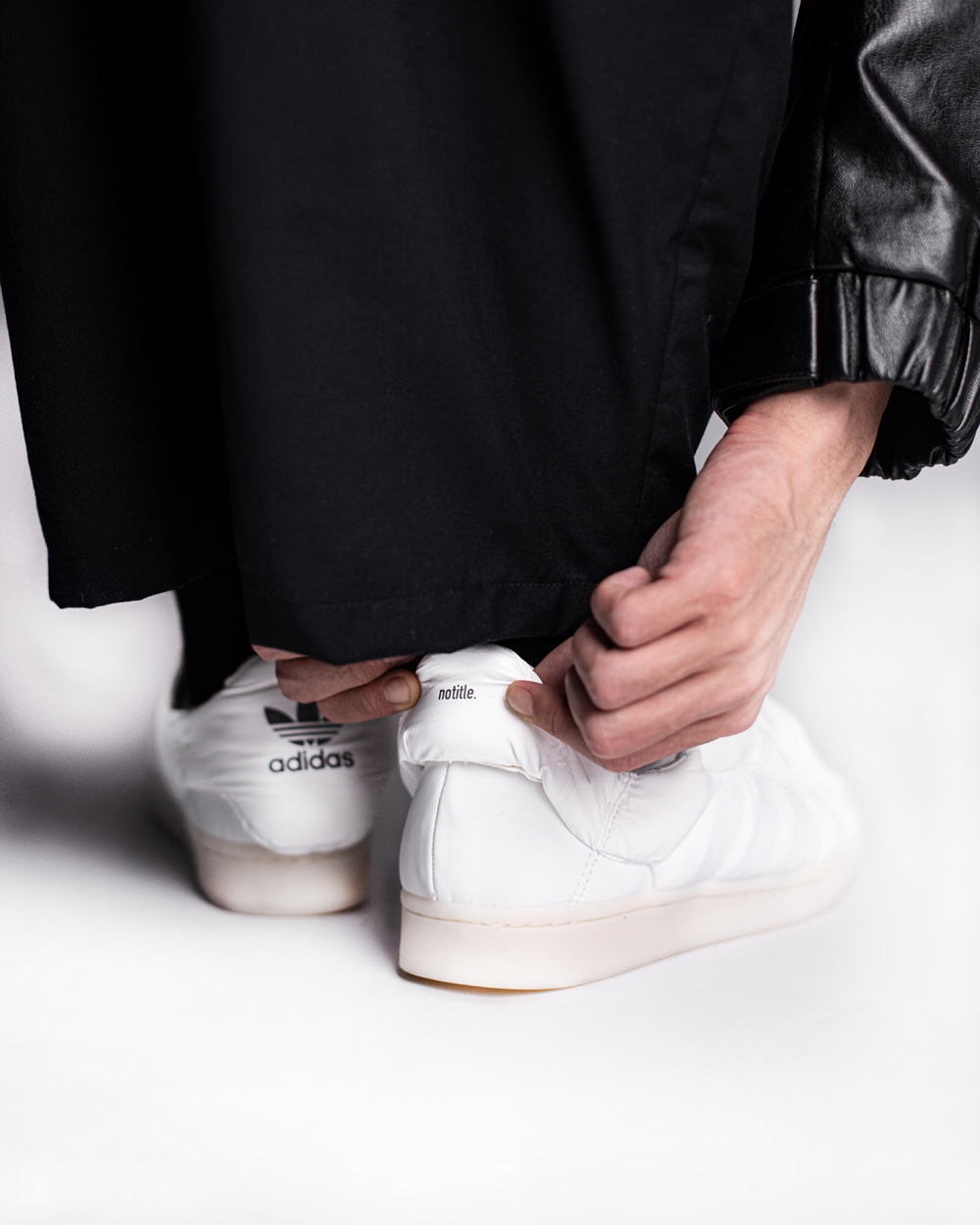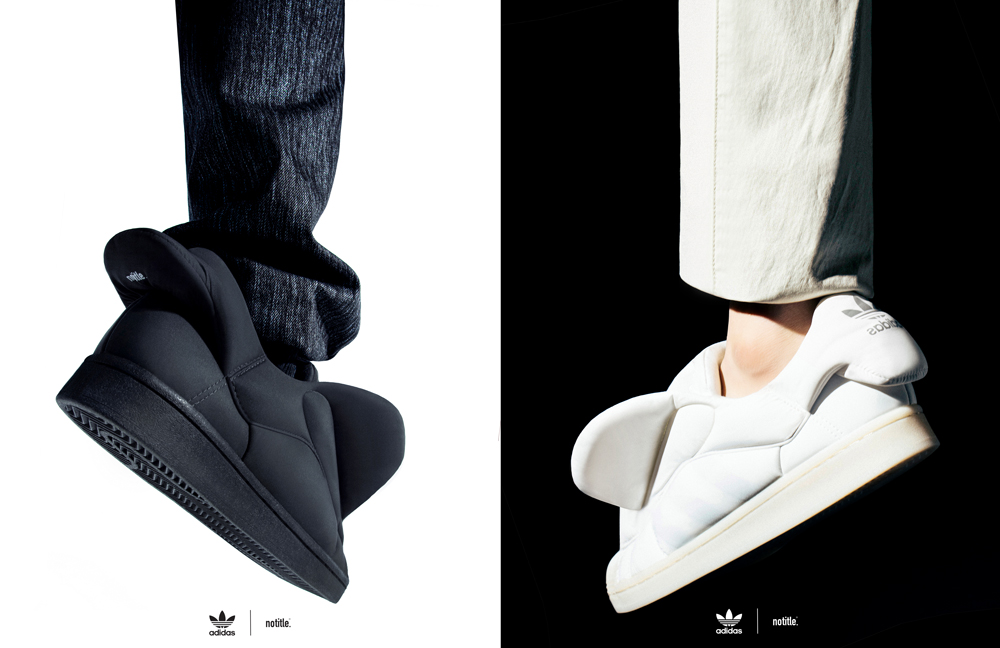 notitle.® 将 adidas Originals 经典鞋型 Superstar 贝壳头重新演绎,推出 adidas Originals x notitle.® AEROSTAR 新系列,纯黑纯白两款配色让极简爱好者们见之狂喜。
