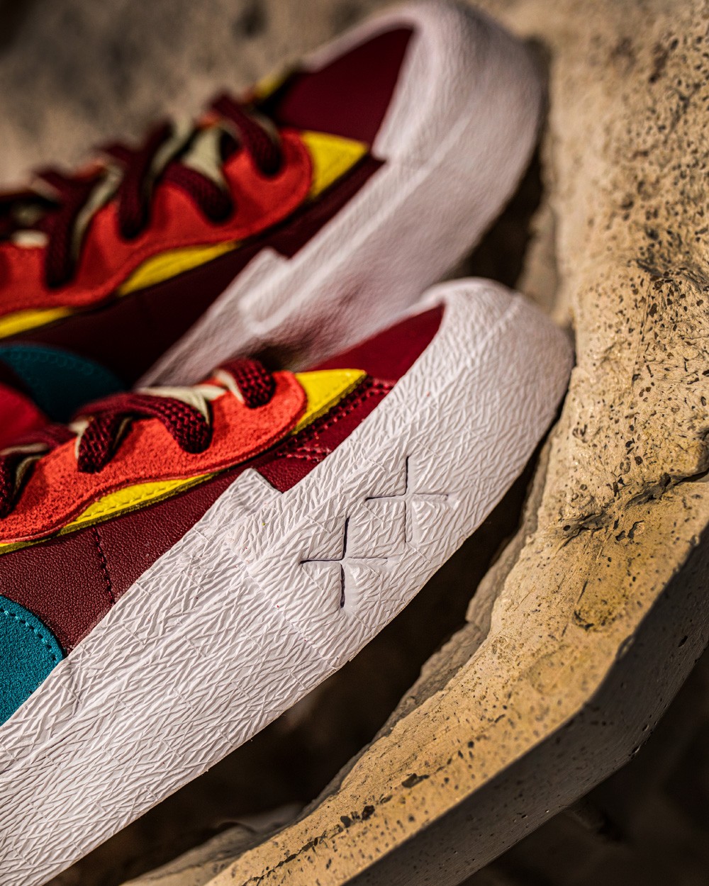 同时延续 sacai 拿手的解构风格,并在中底加入 KAWS「XX」Logo。