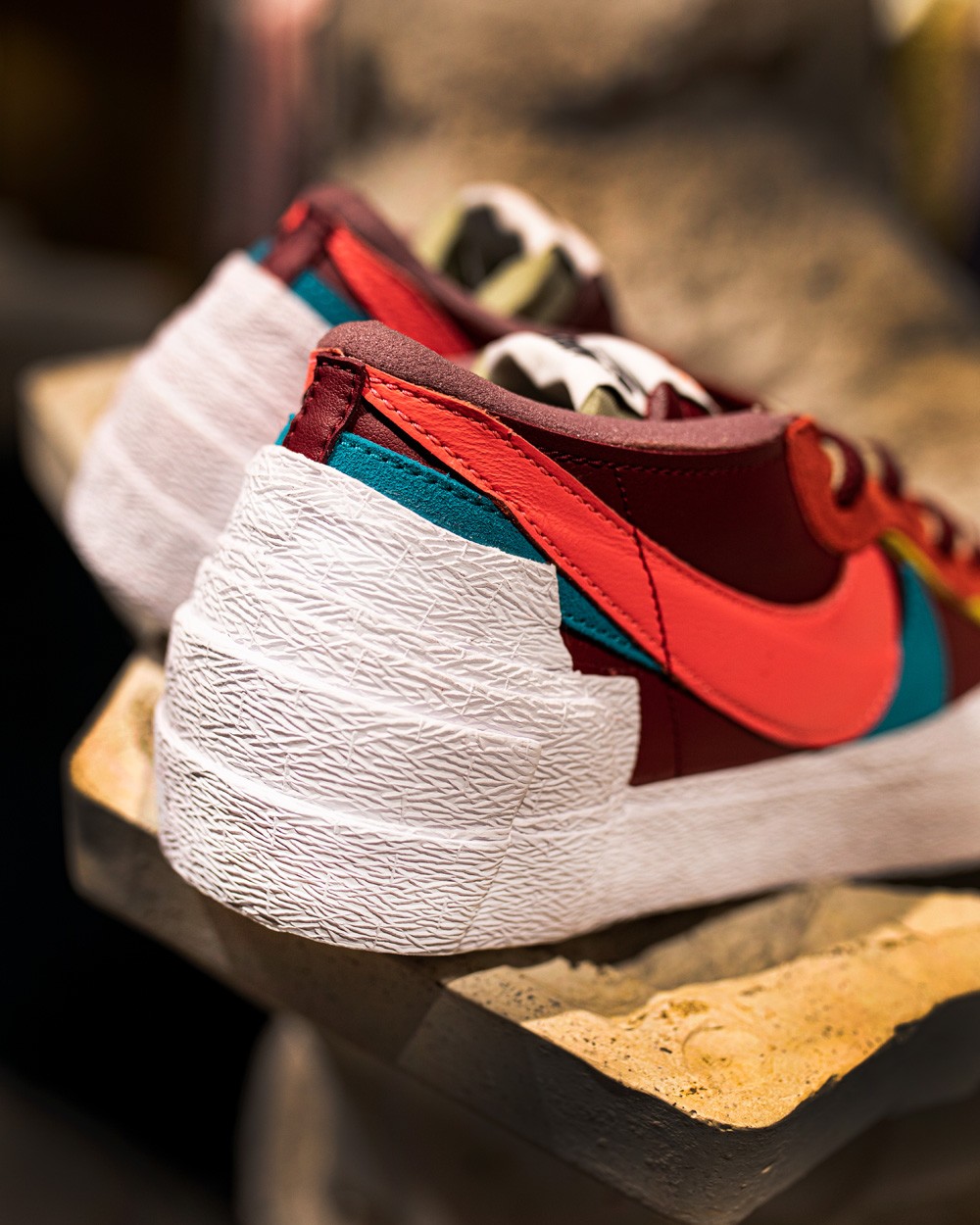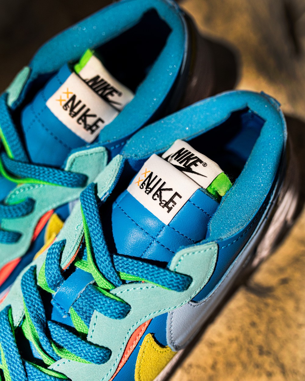 鞋舌上传统的 Nike 标签改为 KAWS、sacai 及 Nike 融合 Logo 呈现,进一步彰显联名身份。