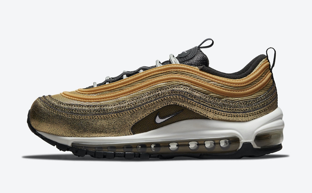 近日,一双全新配色 Nike Air Max 97 “Golden Gals” 官方图片曝光。