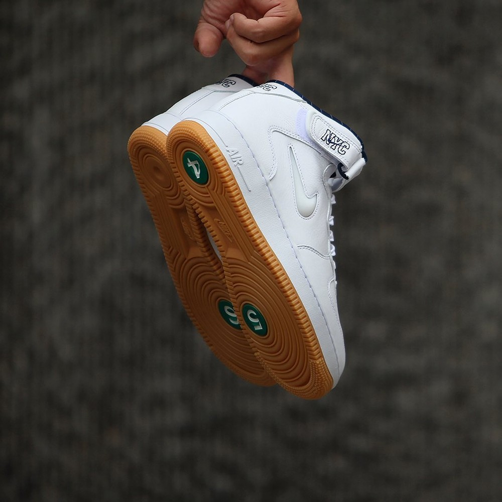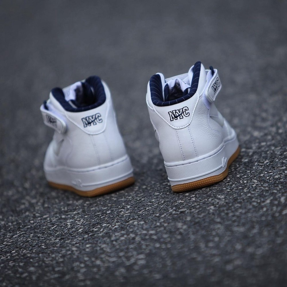 近日,我们之前曝光过多次的一款纽约洋基队配色 Nike Air Force 1 Mid QS 终于上架 SNKRS,并曝光最新实物图。