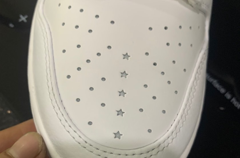 鞋面采用白色光滑皮革和荔枝皮覆盖,遵循 Dunk 系列一如既往的高规格,质感弥补了整双鞋在色彩上的不足。