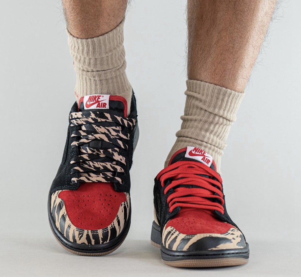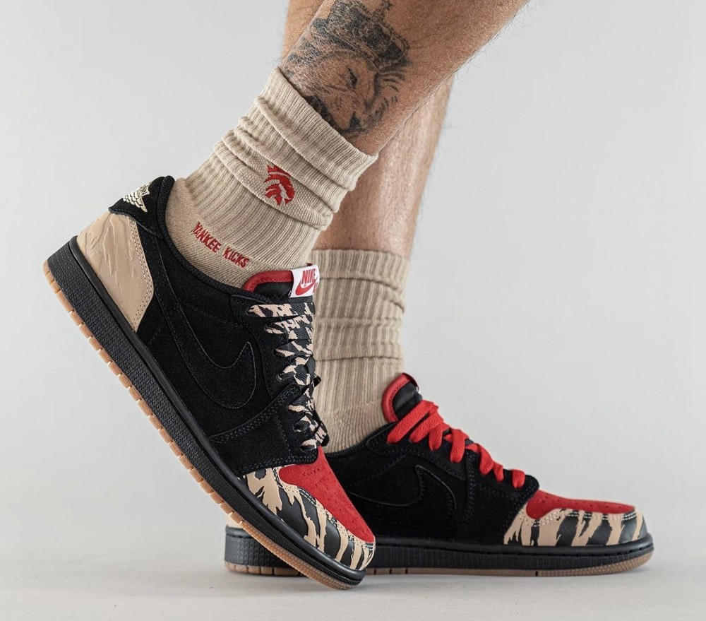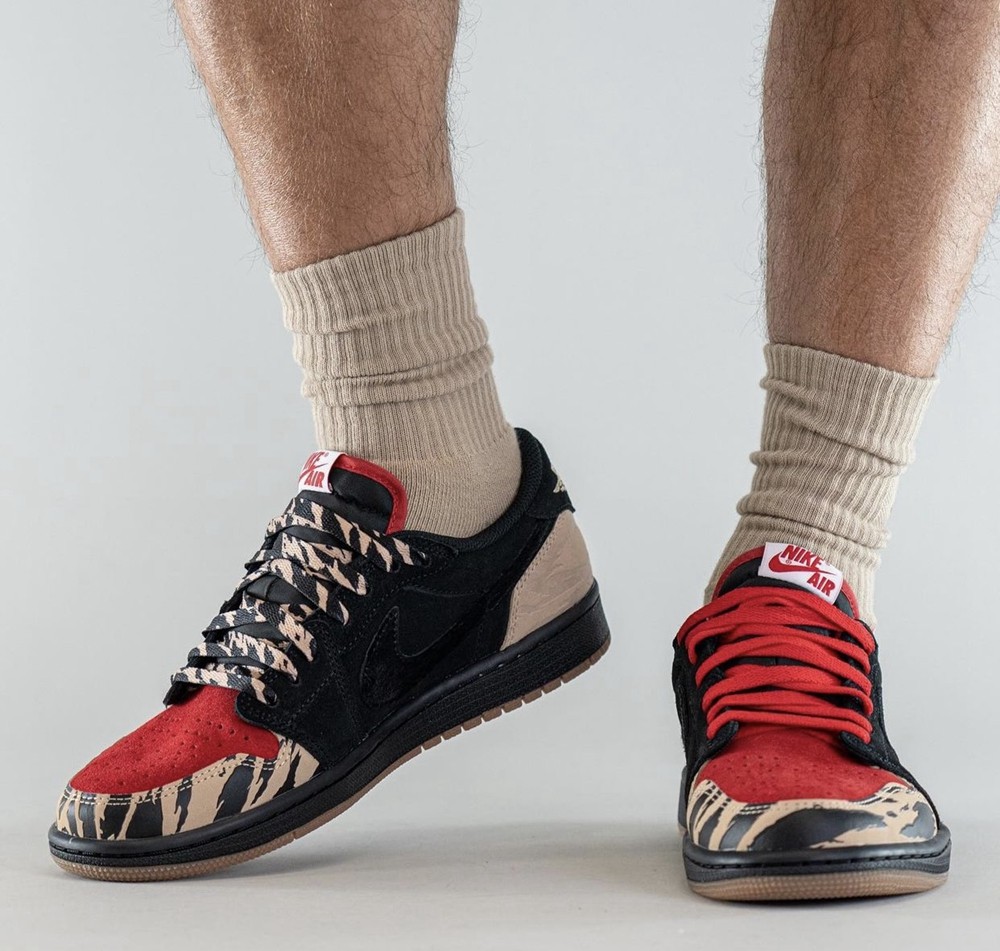 近日,被曝光过多次的全新配色 SoleFly x Air Jordan 1 Low “Carnivore” 又有实物上脚图片释出。