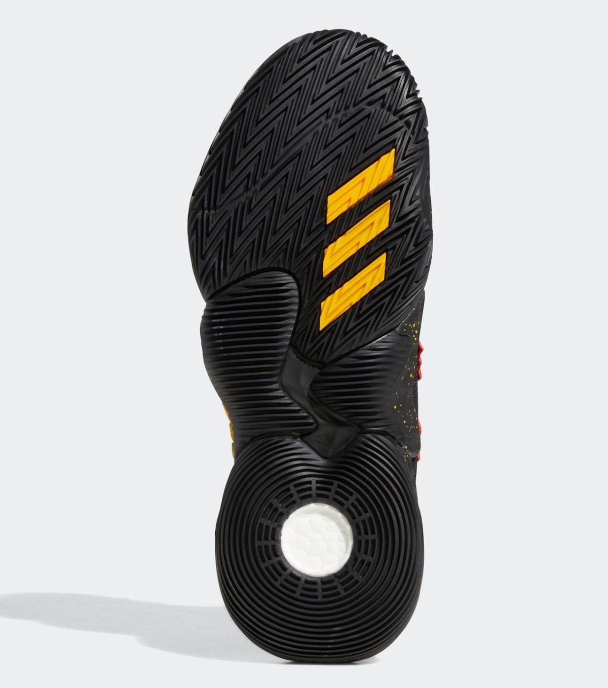 中底泼墨的效果增添一丝细节,配置方面外底前掌 Lightstrike 和后跟 Boost 科技,为实战提供了软弹与轻盈的脚感。