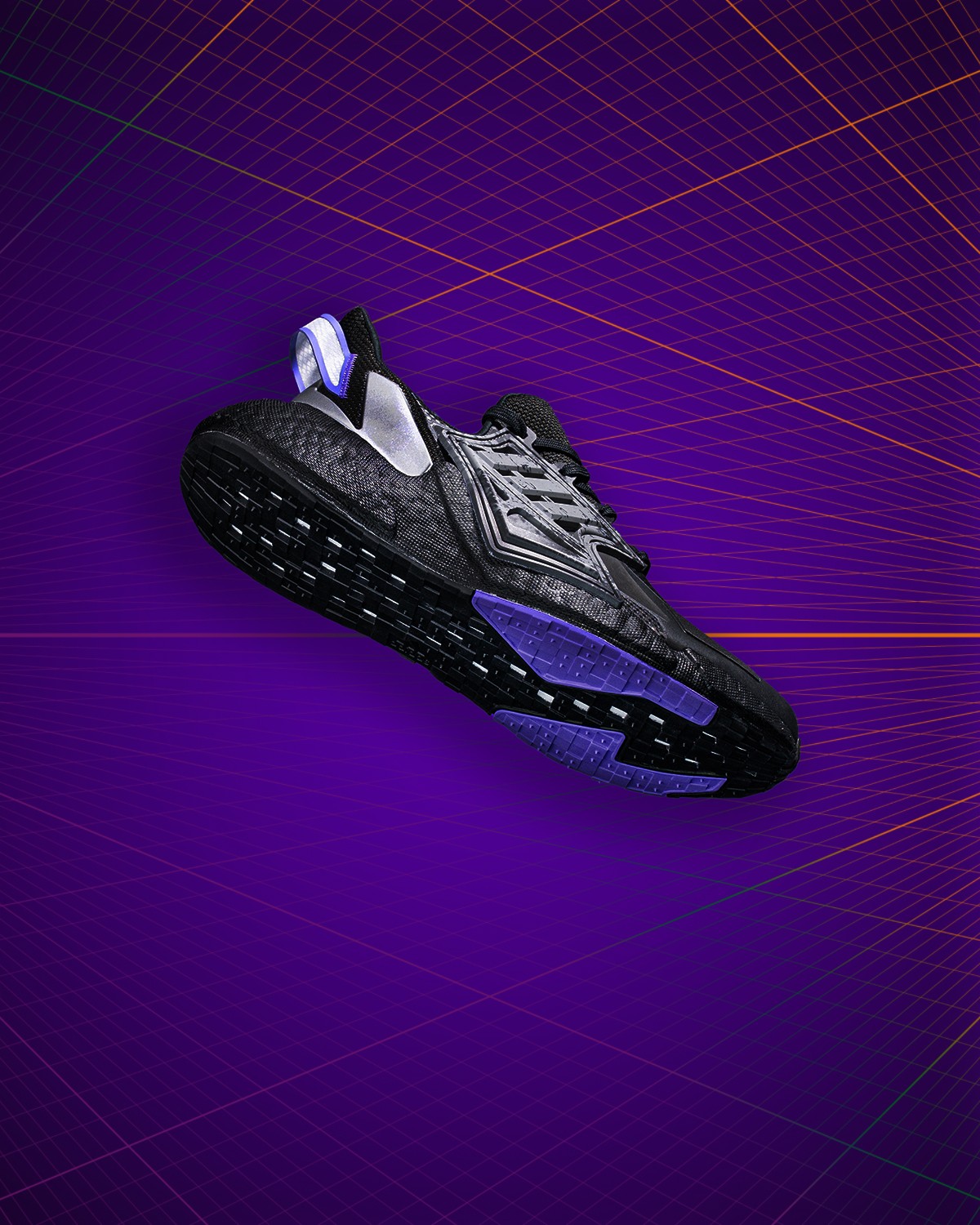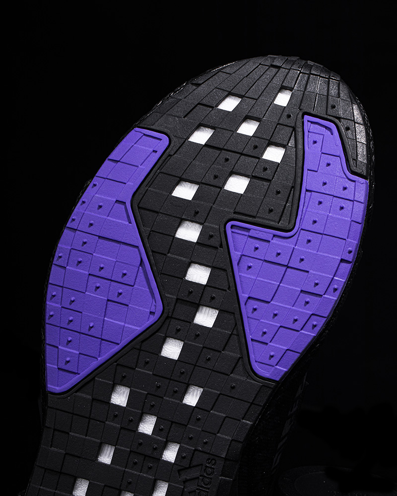 覆盖全掌的 JETBoost 缓震采用几何形态的外底包裹。